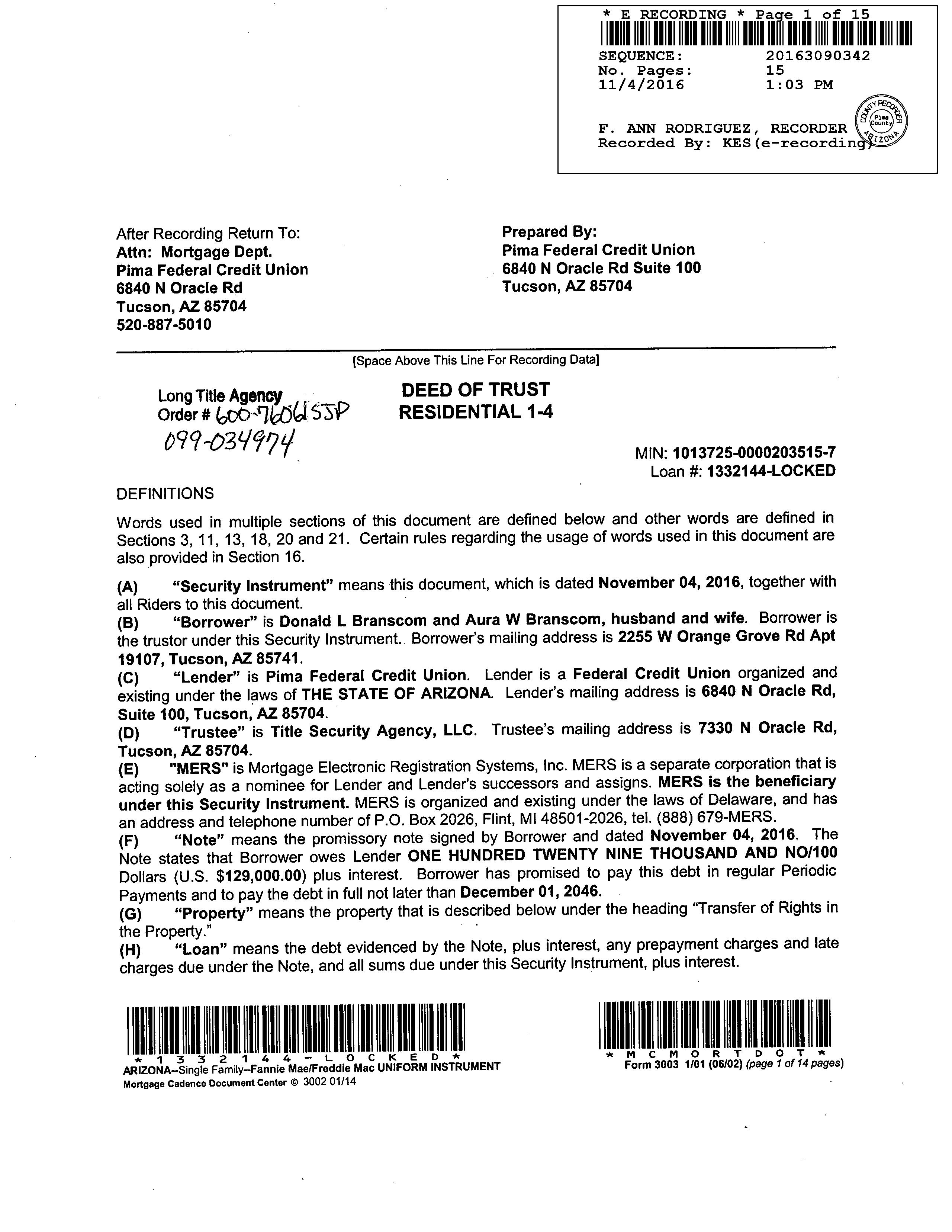 Lender : Pima Fcu