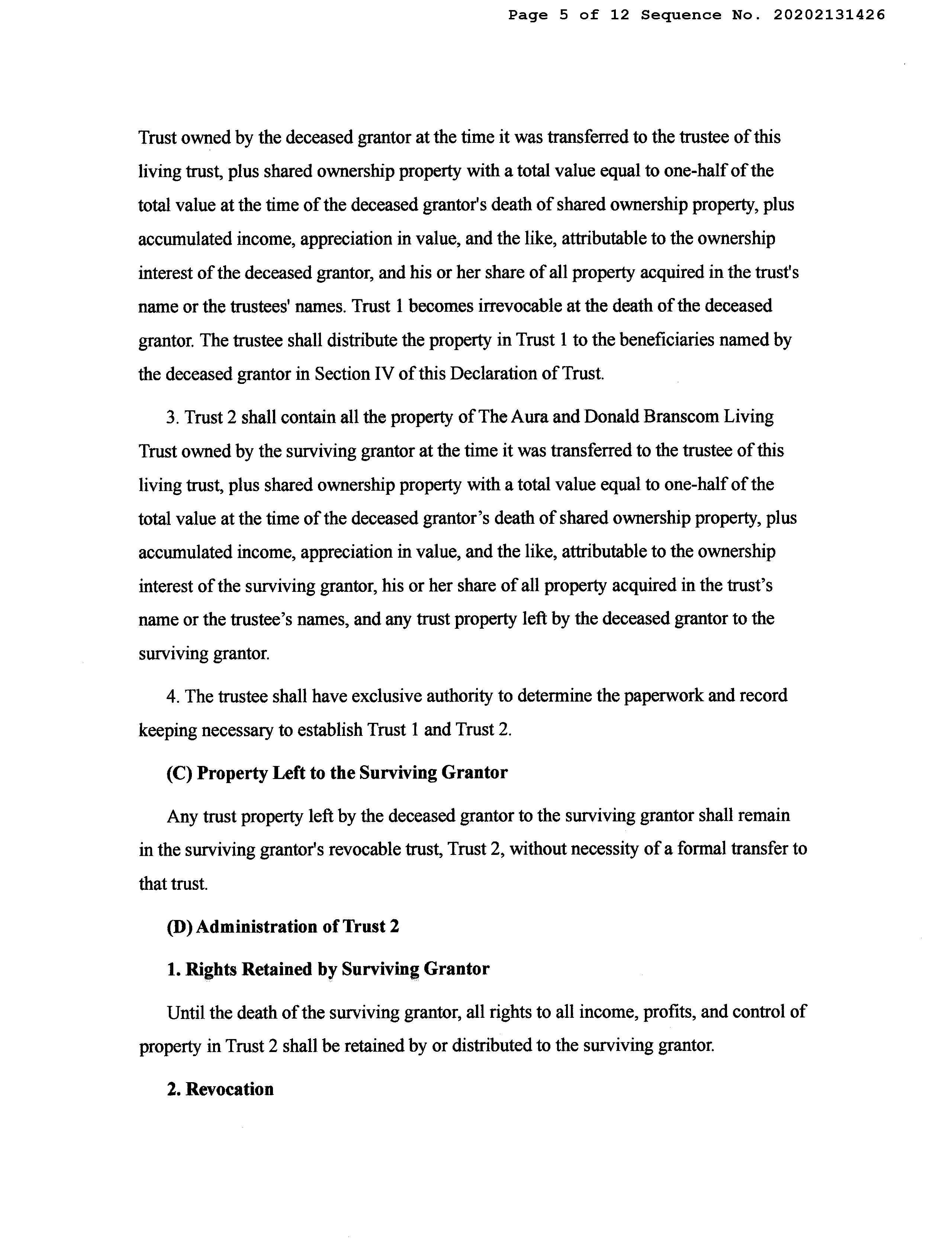 Vesting Codes : / / Living Trust