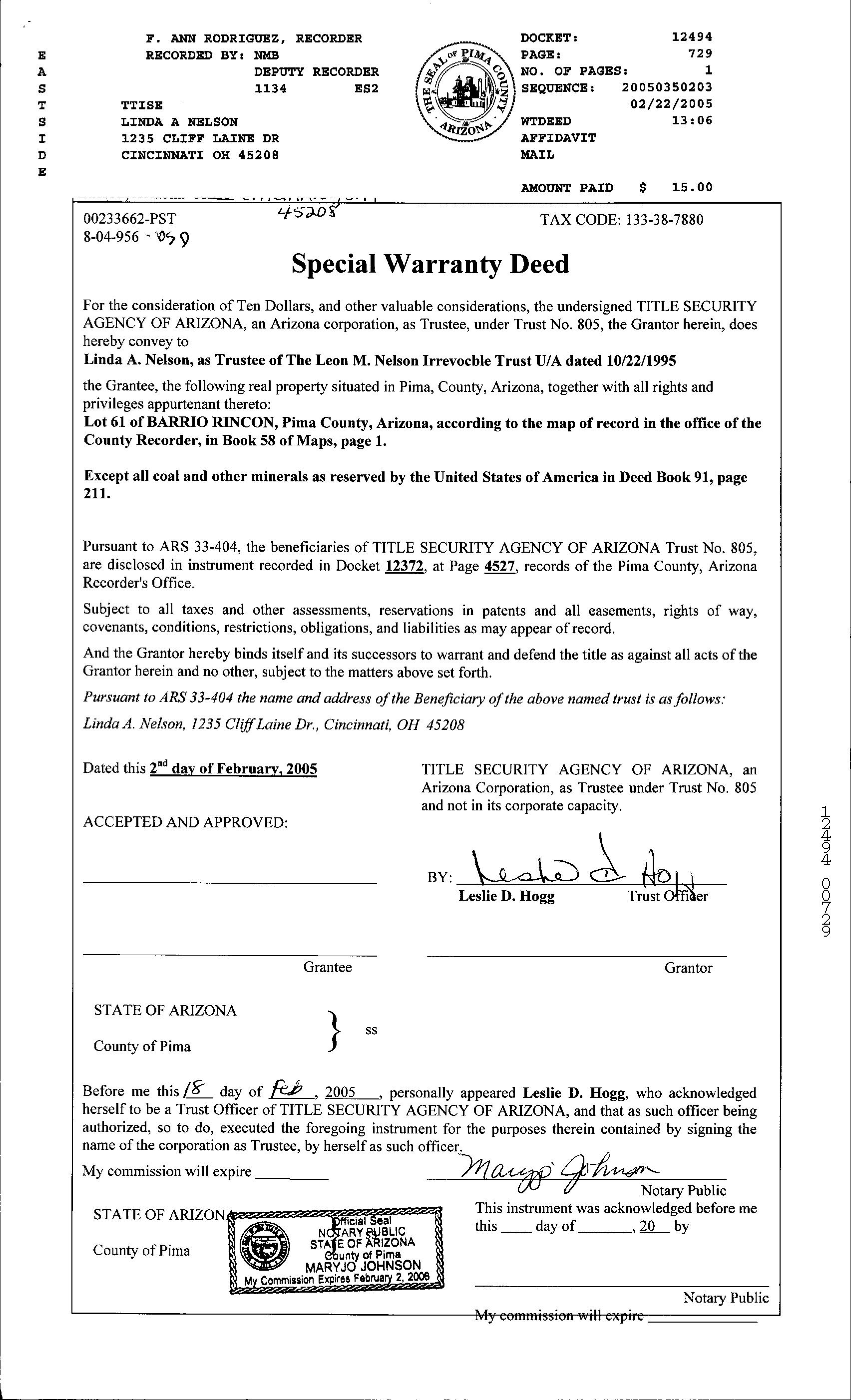 Owner Name : Nelson Linda A