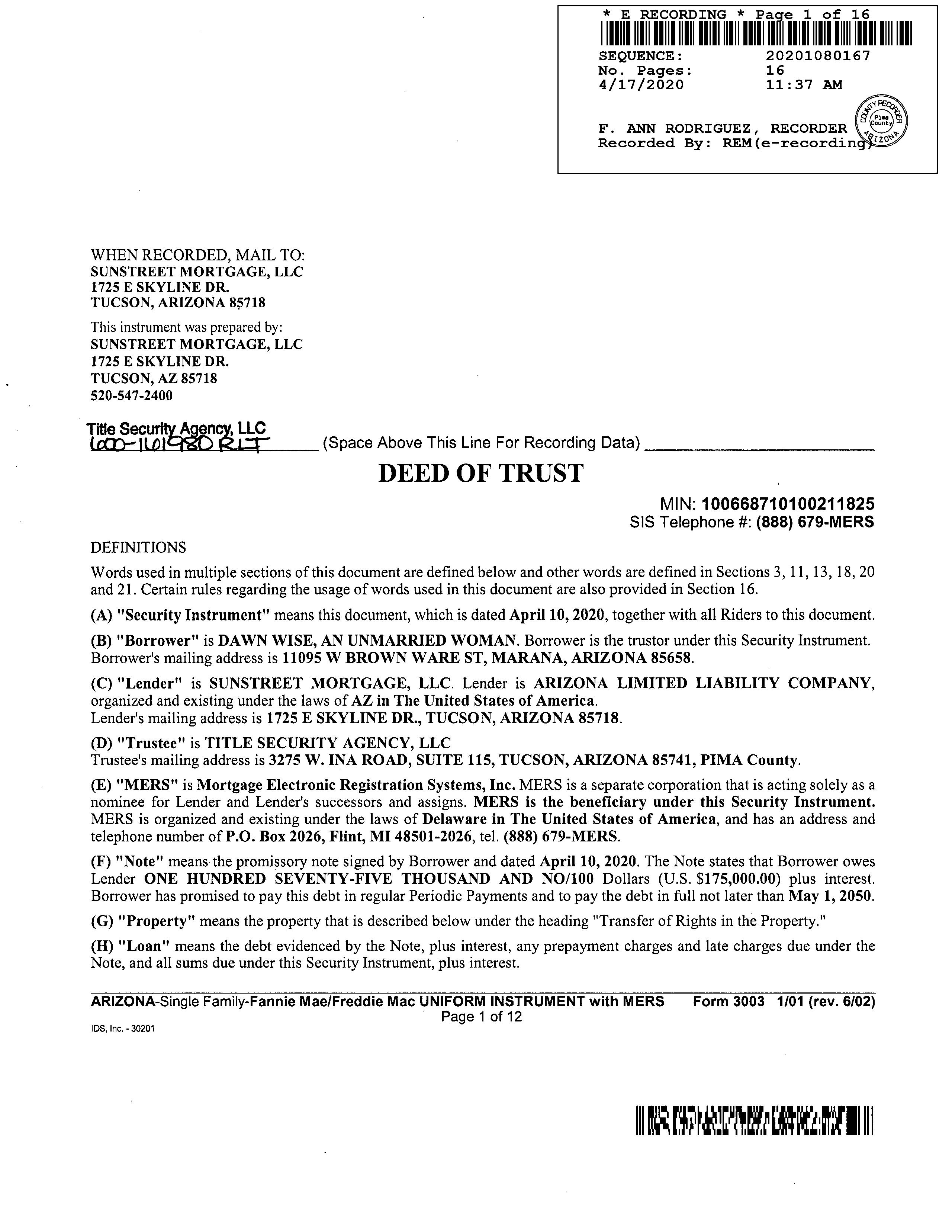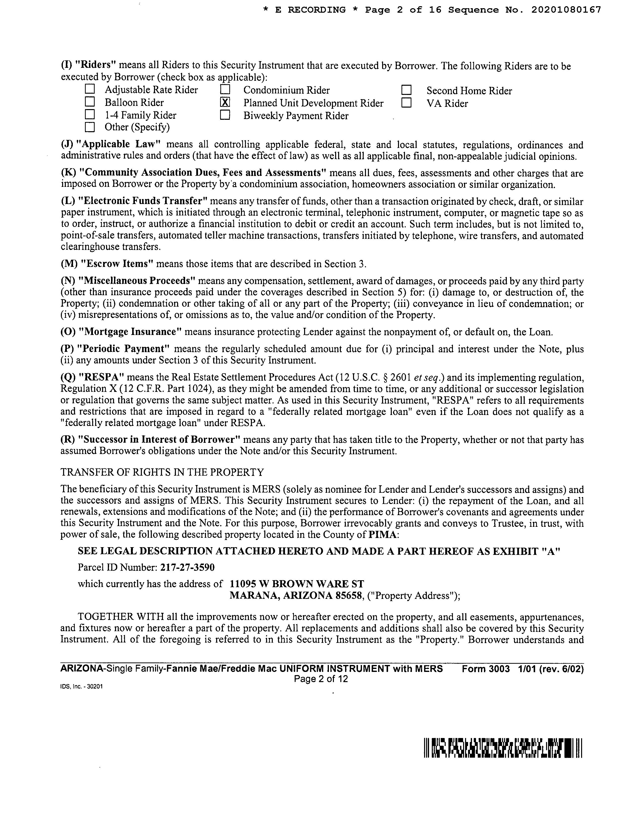 Mailing Address : 11095 W Brown Ware St, Marana AZ 85658-4633 H015