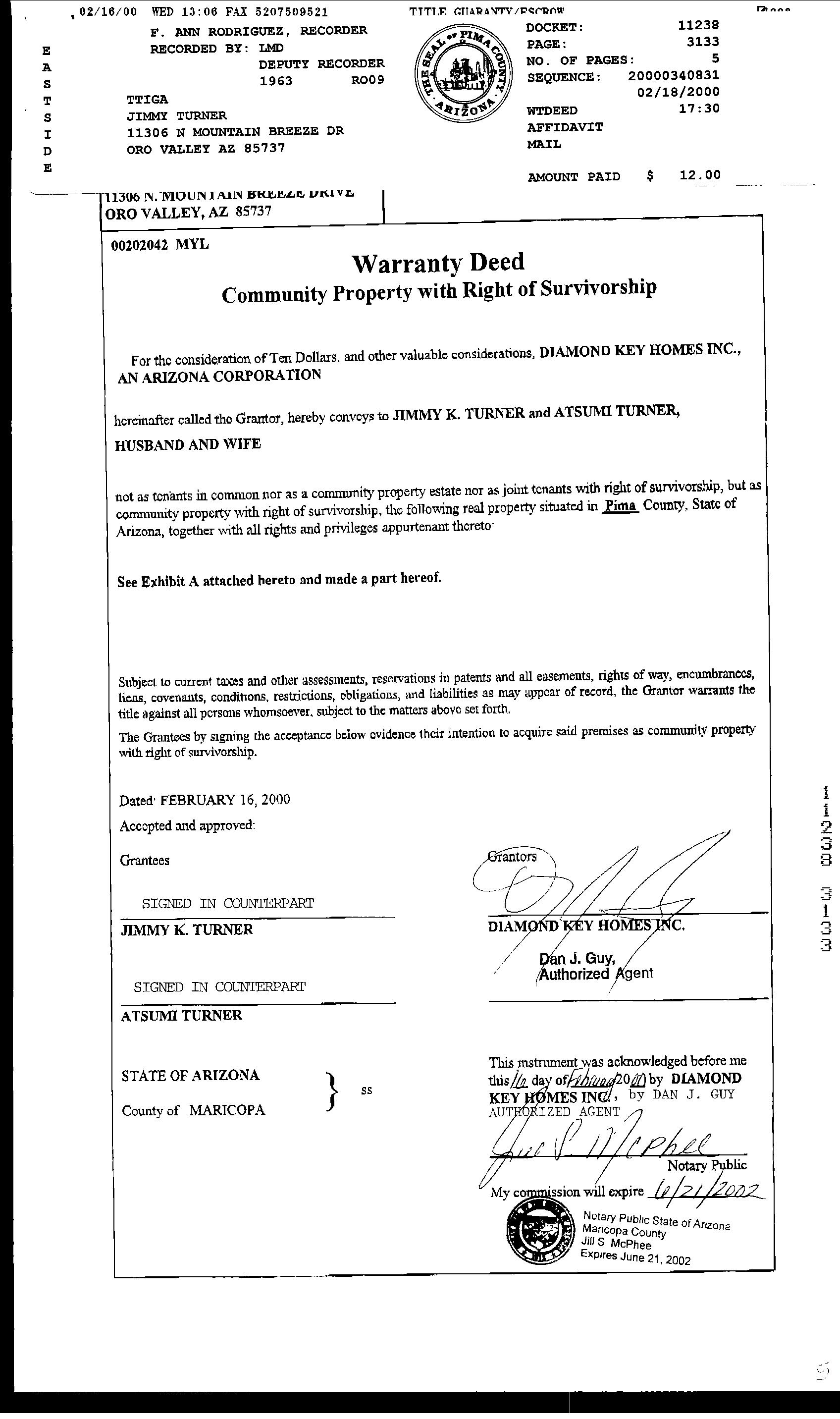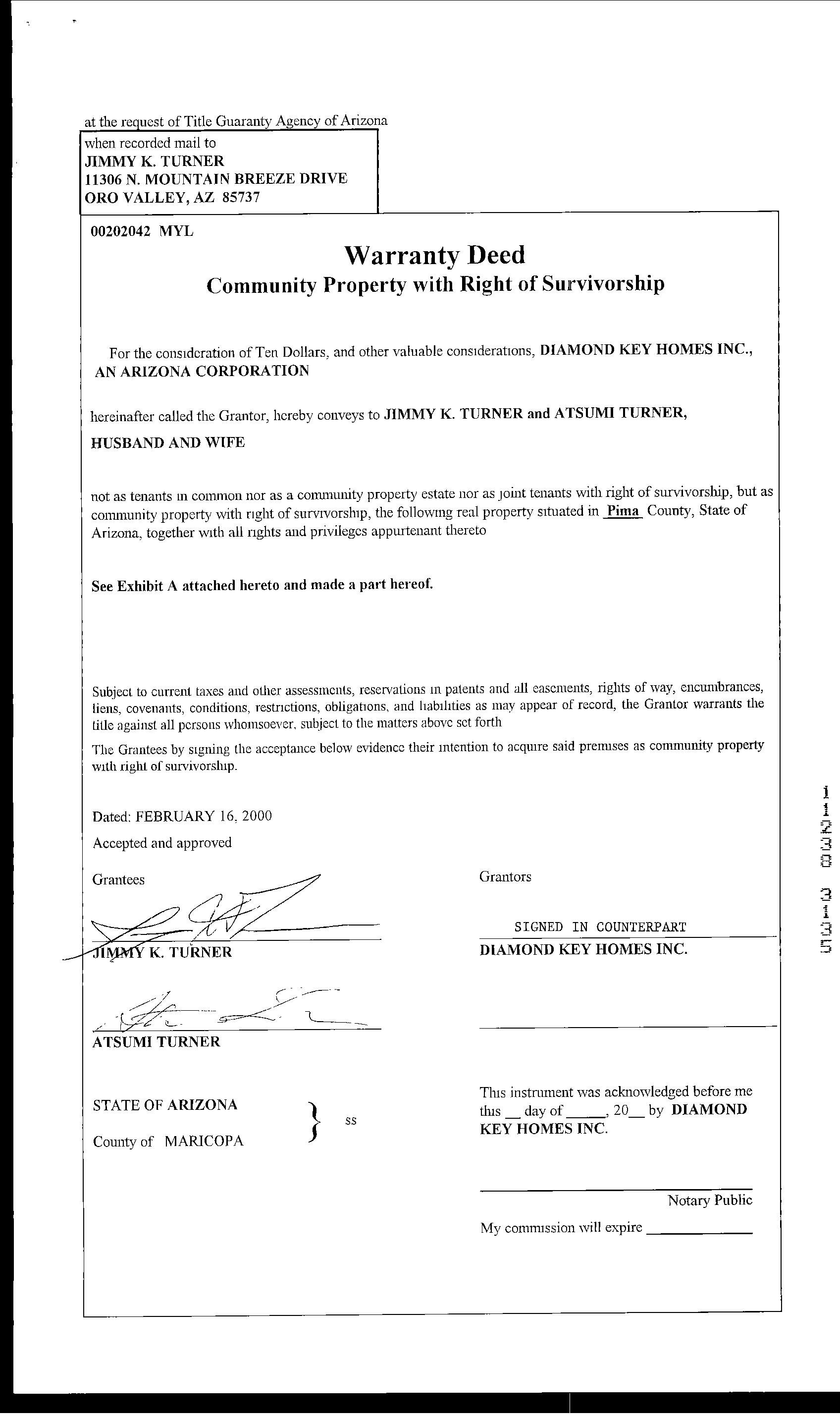 Owner Name : Turner Jimmy K / Turner Atsumi