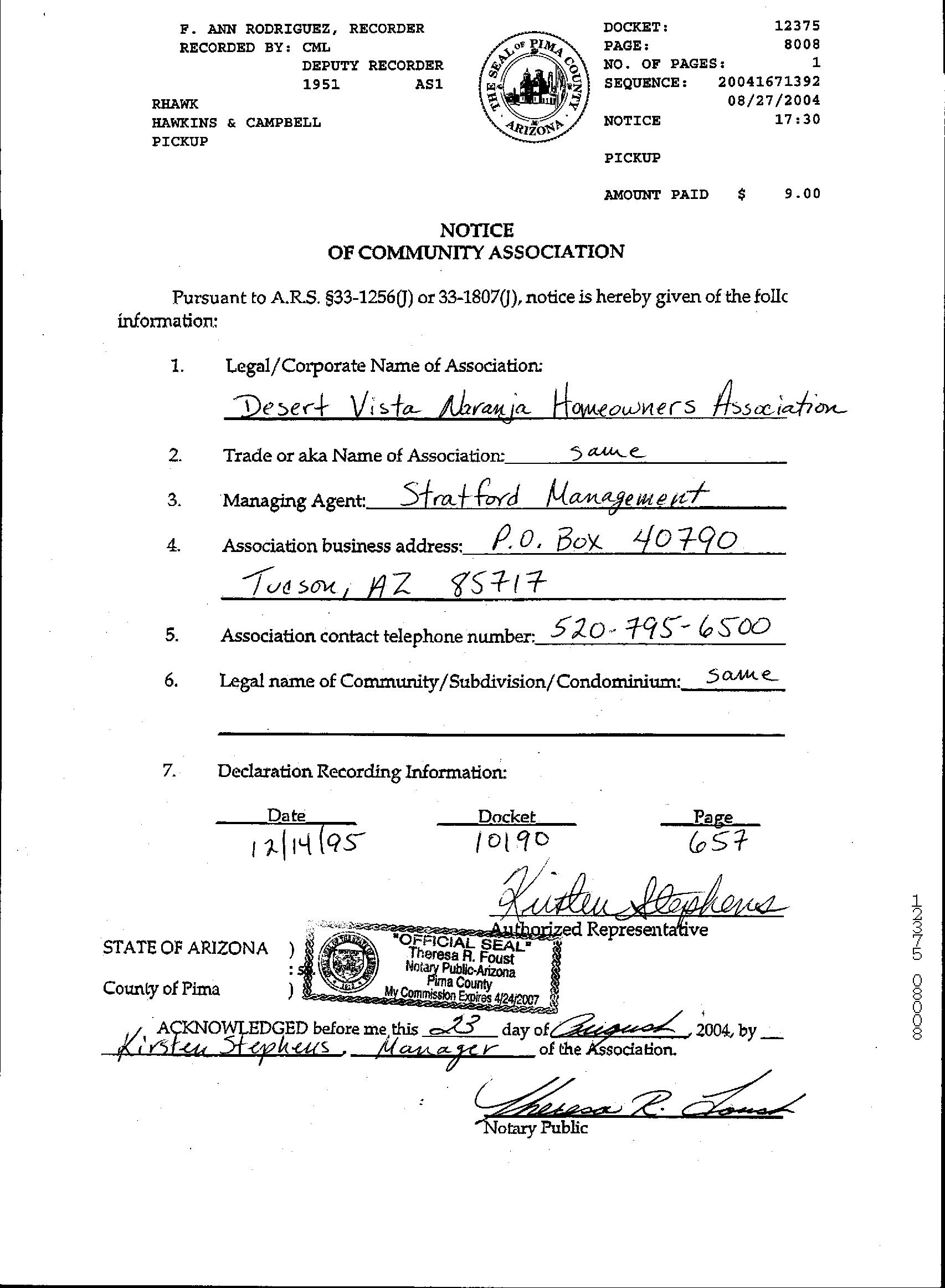 Mailing Address : Po Box 68936, Oro Valley AZ 85737-0007 B009