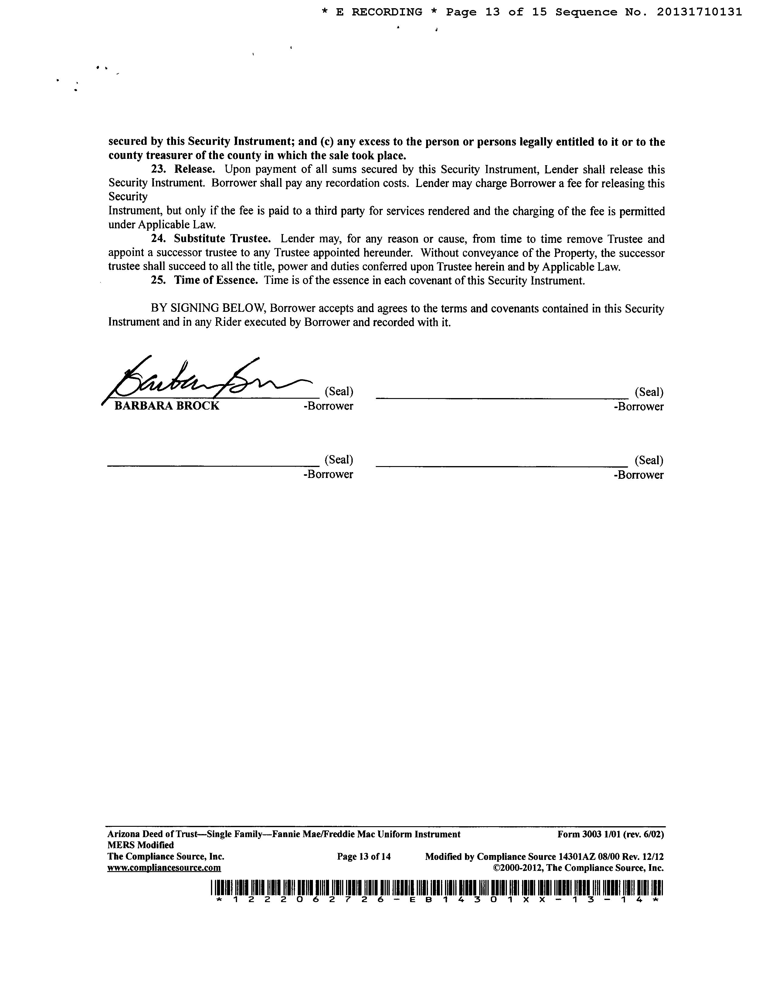 Subject Property : 11700 E Old Spanish Trl Tucson AZ 85730 Owner Information Owner Name : Brock Barbara B Mailing Address : 11700 E Old Spanish Trl, Tucson AZ 85730-5616 C067 Vesting Codes : / / Living Trust Owner OccupiedIndicator : O Location Information Legal Description : Pcl In Ctr E2 Lyg S & Adj To Old Spanish Trail Rd 4.467 Ac Sec 30-14-16 County : Pima, Az APN : 205-62-1180 Census Tract / Block : 40.26 / 3 Map Reference : 30-14S-16E Township-Range- Sect : 14S-16E-30 School District : Tanque Verde Market Area : 91 Munic/Township : Tanque Verde Owner Transfer Information Recording/Sale Date : 07/18/2016 / 07/13/2016 Deed Type : Warranty Deed Document # : 2000631 Last Market Sale Information Recording/Sale Date : 10/30/2002 / 09/18/2002 1st Mtg Int. Rate/Type : / Fixed Rate Loan Sale Price : $342,500 1st Mtg Document # : 11916-7894 Document # : 11916-7890 1st Mtg Term : 30 Deed Type : Warranty Deed Price Per SqFt : $127.70 1st Mtg Amount/Type : $300,500 / Cnv Title Company : First American Title Lender : Wells Fargo Hm Mtg Inc Seller Name : Duddy James R & Elizabeth A Prior Sale Information Prior Rec/Sale Date : 08/01/2000 / 07/27/2000 Prior Lender : First Franklin Fin'l Prior Sale Price : $305,000 Prior 1st Mtg Amt/Type : $228,750 / Conv Prior Doc Number : 11352-1615 Prior 1st Mtg Rate/Type : / Adjustable Int Rate Loan Prior Deed Type : Joint Tenancy Deed Customer Name : Chantel Cortez Customer Company Name : FIRST AMERICAN TITLE Prepared On : 08/29/2022 © 2022 CoreLogic. All rights reserved