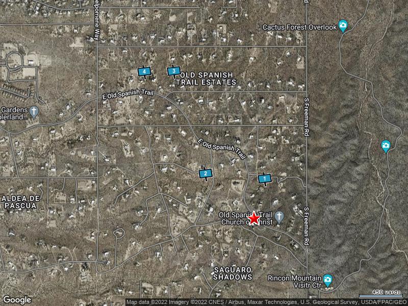 11795 E OLD SPANISH TRL Distance 0.14 Miles Owner Name : Old Spanish Trail Church Of Ch Recording Date : 05/11/1994 Total Value : $444,611 Sale Price : $65,000 Land Use : Religious Lot Acres : 3.44 Stories : 1 Living Area : 2,460 Yr Blt / Eff Yr Blt : 2004 / 2004 APN : 205-62-1730 11625 E OLD SPANISH TRL Distance 0.15 Miles Owner Name : Wimberly Felicia A Recording Date : 01/11/1996 Total Value : $376,986 Property Tax : $4,073.67 Bed / Bath : / 3 Lot Acres : 3.32 Land Use : Sfr Living Area : 2,700 Stories : 1 APN : 205-62-1700 Yr Blt / Eff Yr Blt : 1994 / Customer Name : Chantel Cortez Customer Company Name : FIRST AMERICAN TITLE Prepared On : 08/29/2022 © 2022 CoreLogic. All rights reserved