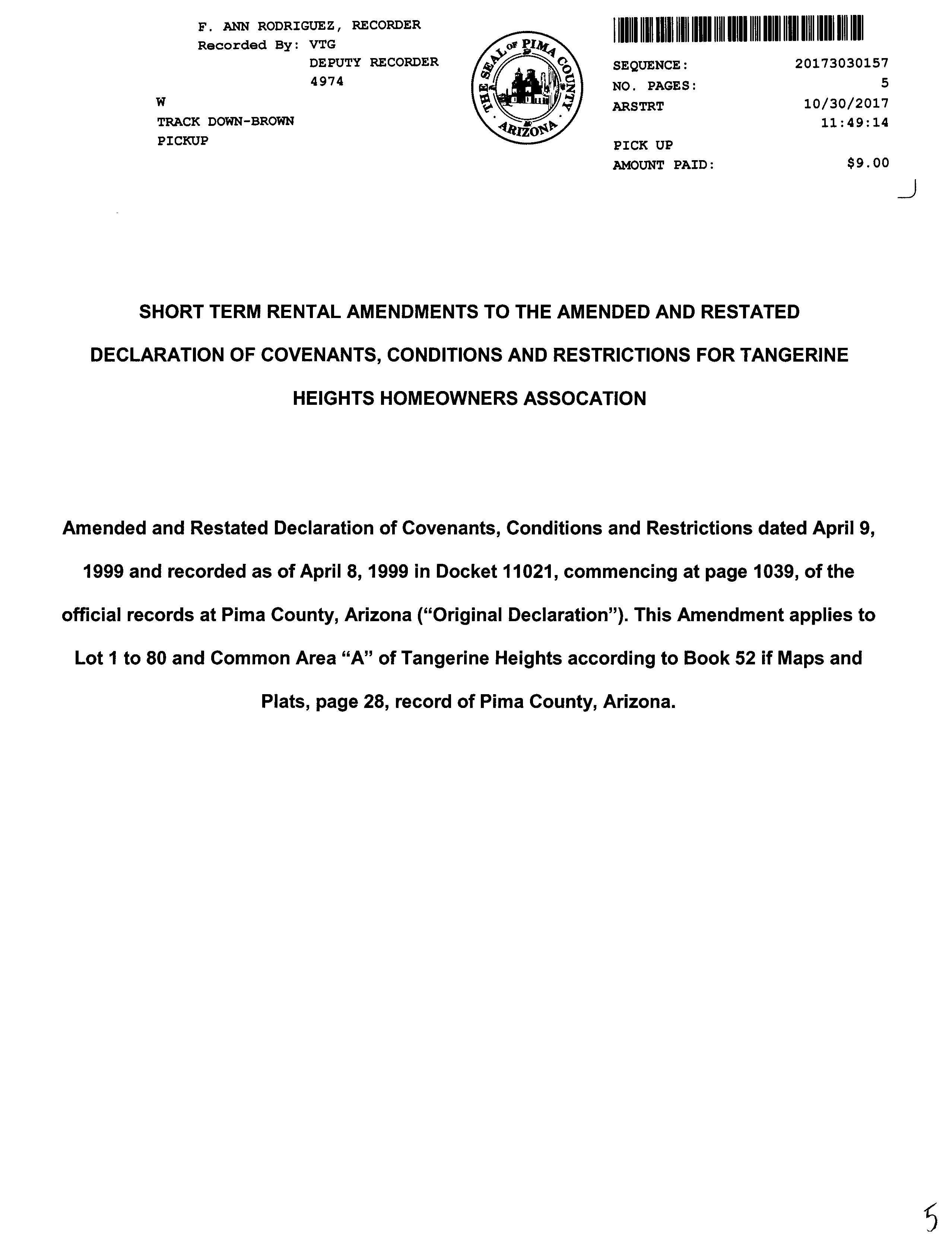 ConditionsCovenants,&Restrictions Thank you for the opportunity to be of service. Restrictions indicating a preference, limitation or discrimination based on race, color, religion, sex, handicap, familial status, or national origin are hereby deleted to the extent such restrictions violate 42 USC 3604(c). This information is furnished without fee and without benefit of a complete title search. No liability is assumed by First American Title or Title Security. If it is desired that liability be assumed, you may apply for a policy of title insurance with First American Title Insurance Company.