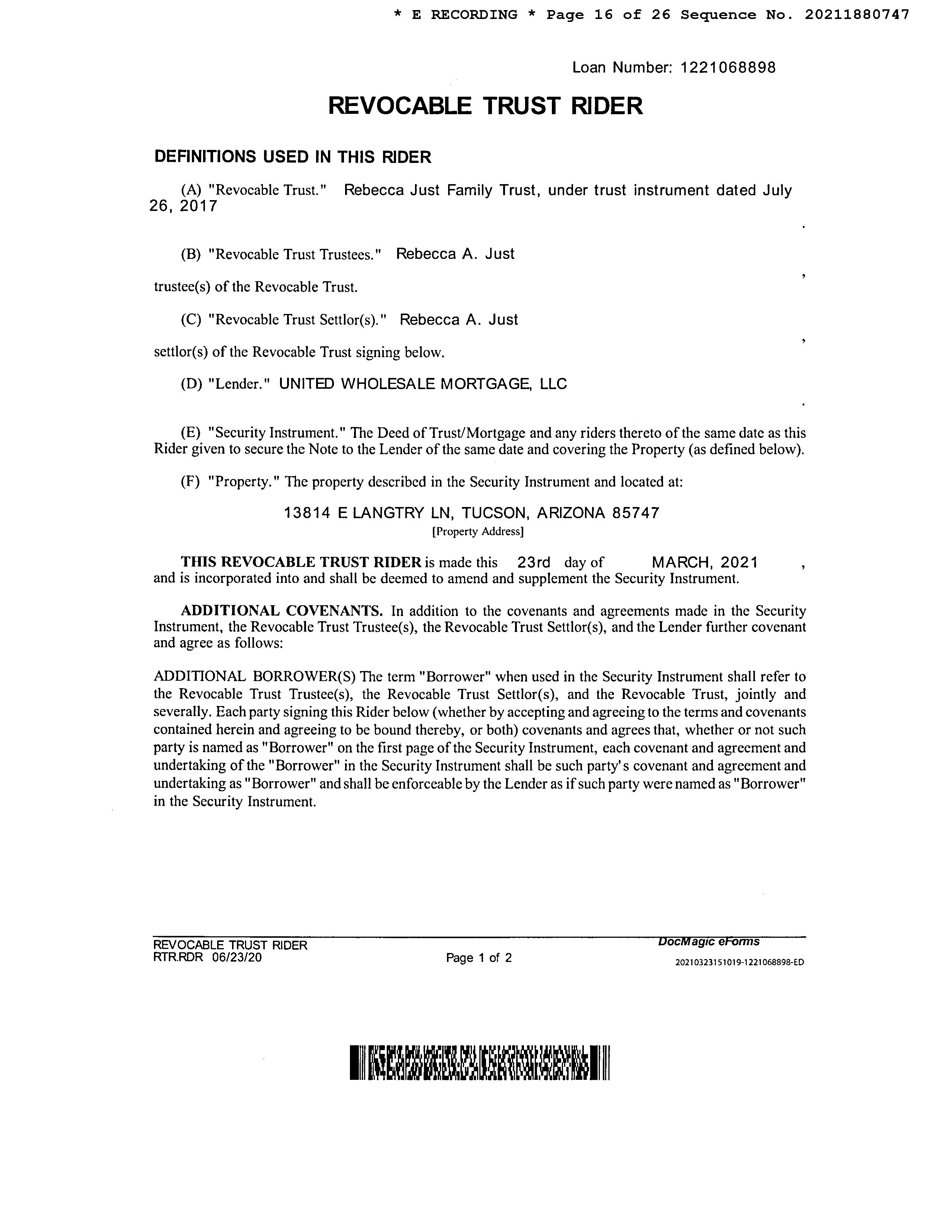 Mailing Address : 13814 E Langtry Ln, Tucson AZ 85747-9635 R007