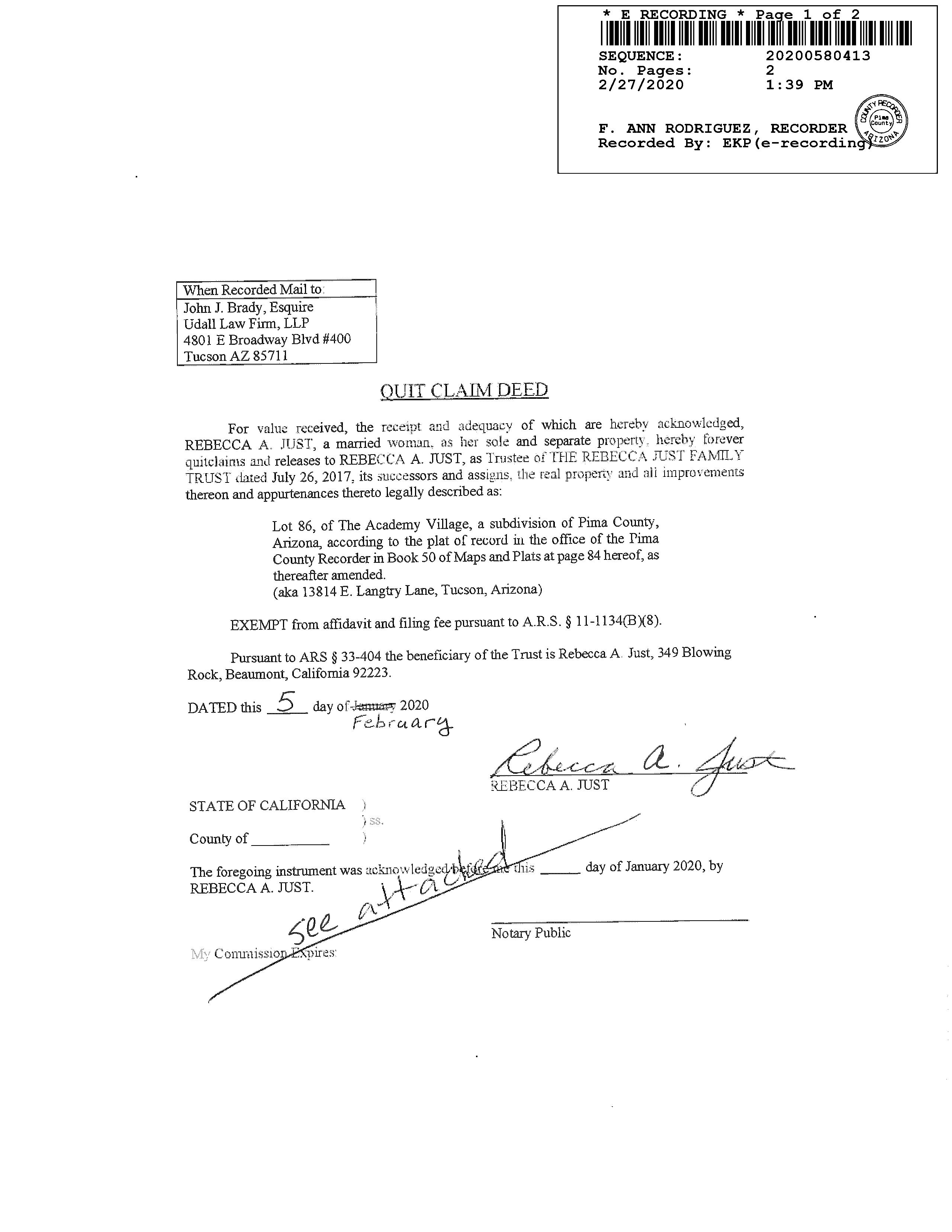 Recording/Sale Date : 02/27/2020 / 02/05/2020