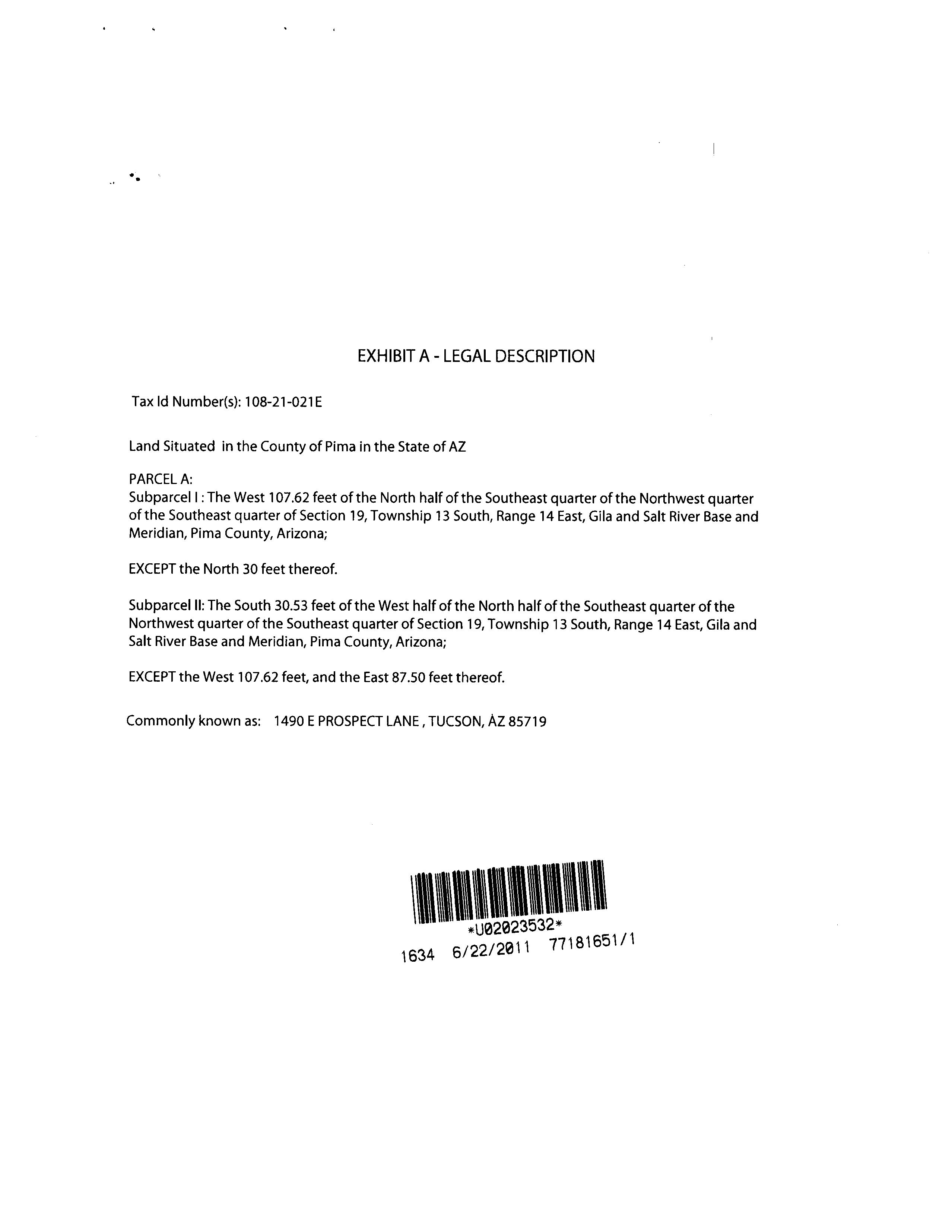 Mailing Address : 1490 E Prospect Ln, Tucson AZ 85719-1125 C033