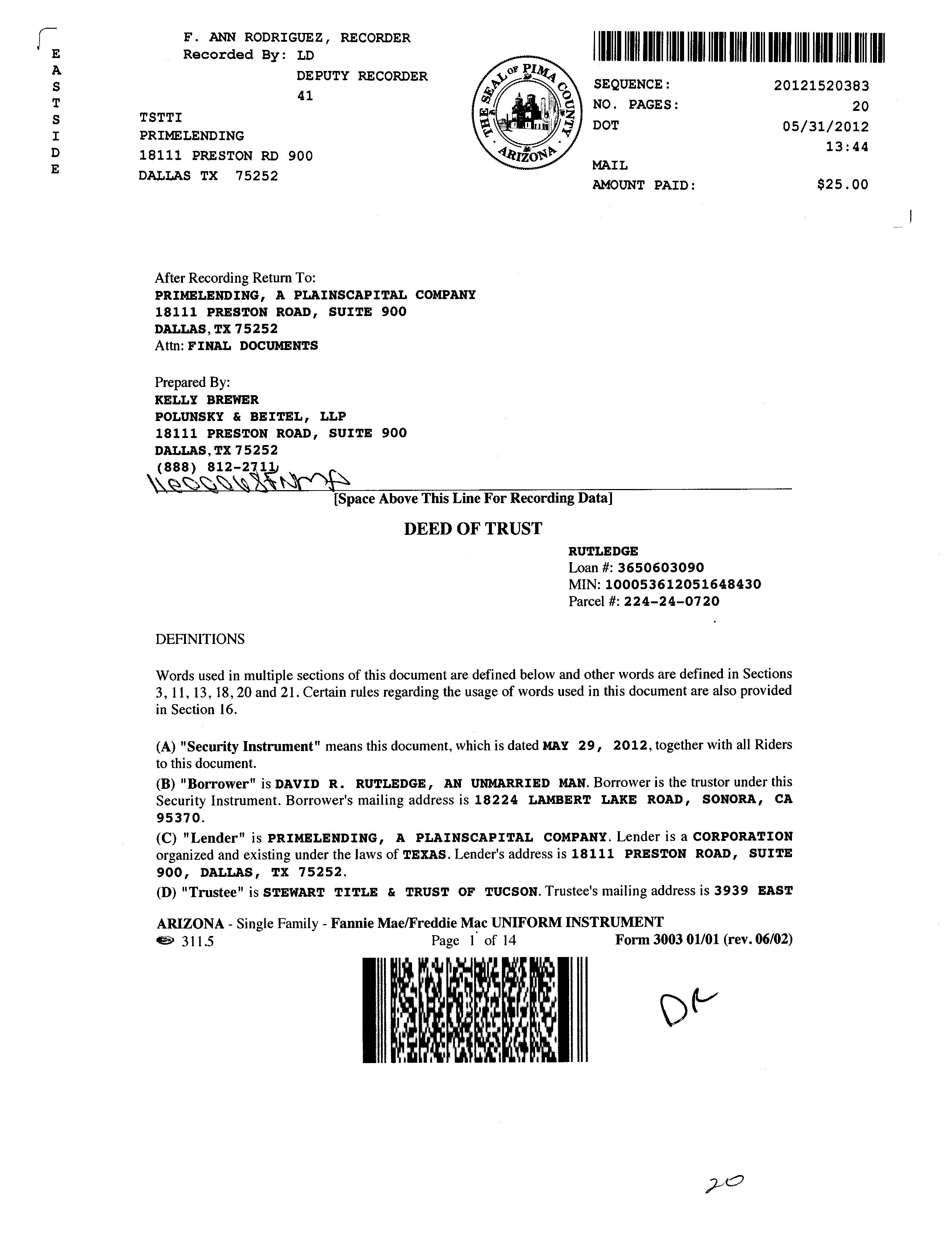 Owner Name: Rutledge David R / APN / Alternate APN: 224-24-0720 / Deed Type: Special Warranty Deed Land Use: Sfr