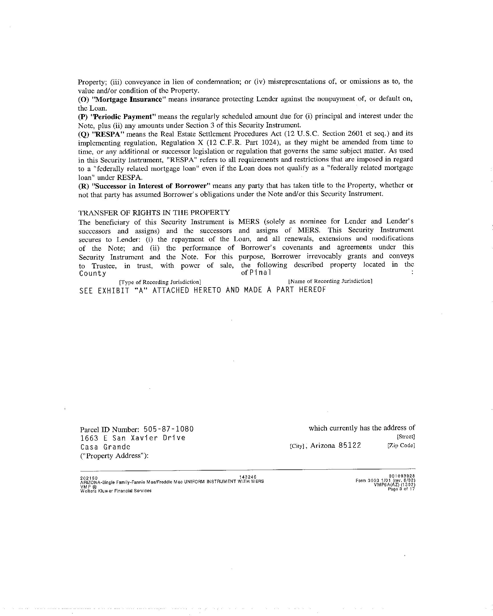 Mailing Address : 1663 E San Xavier Dr, Casa Grande AZ 85122-6313 R034
