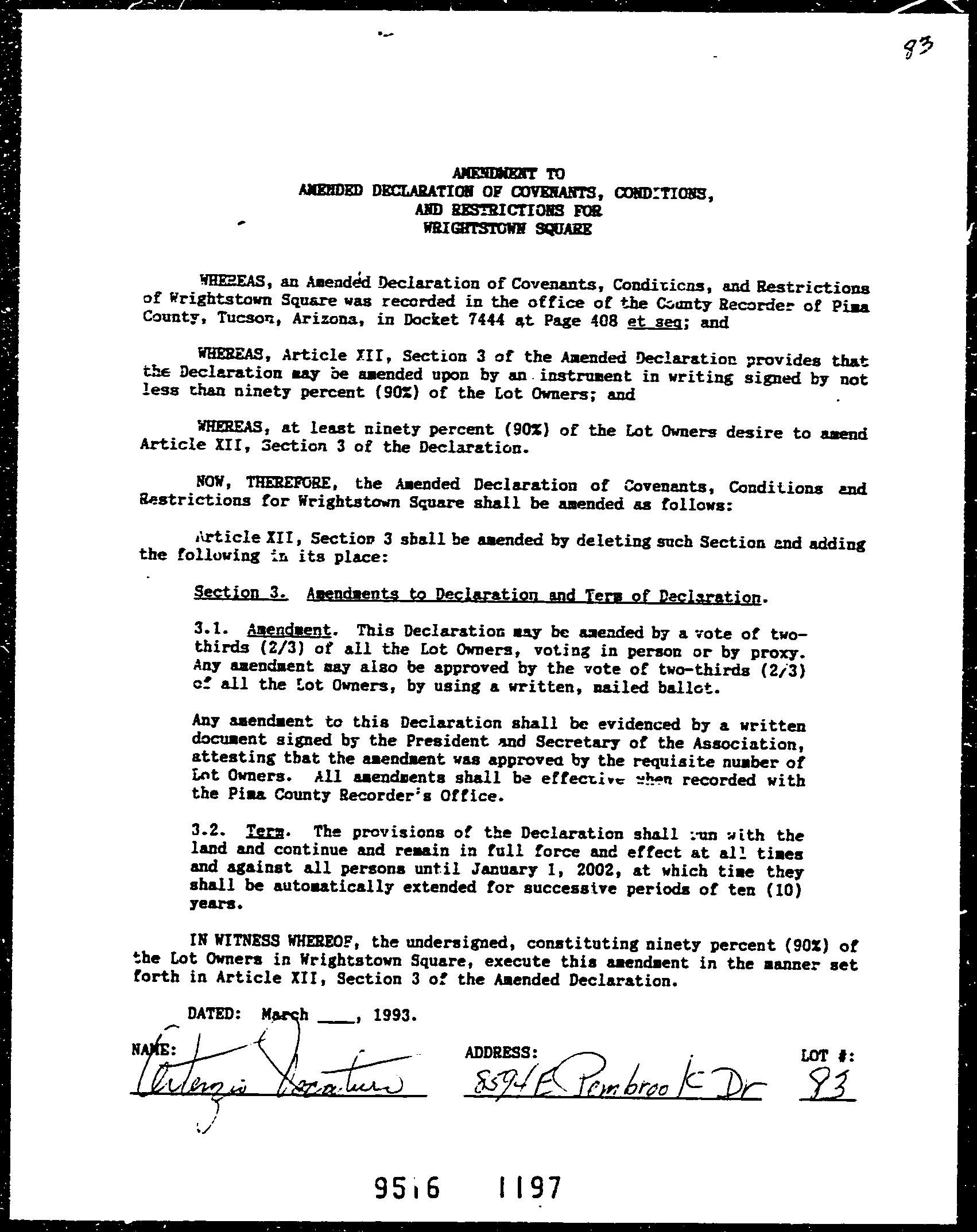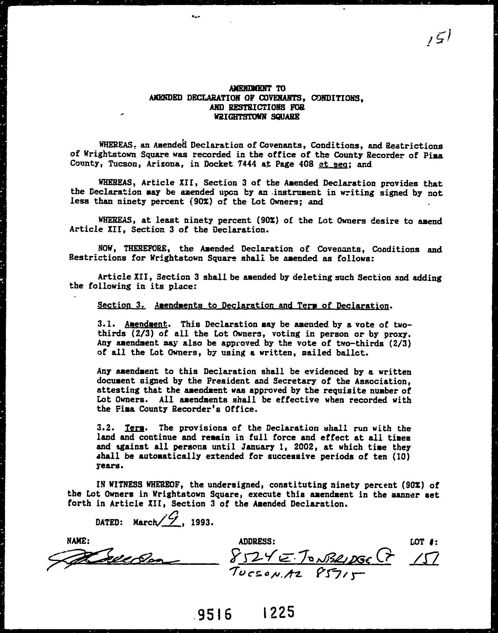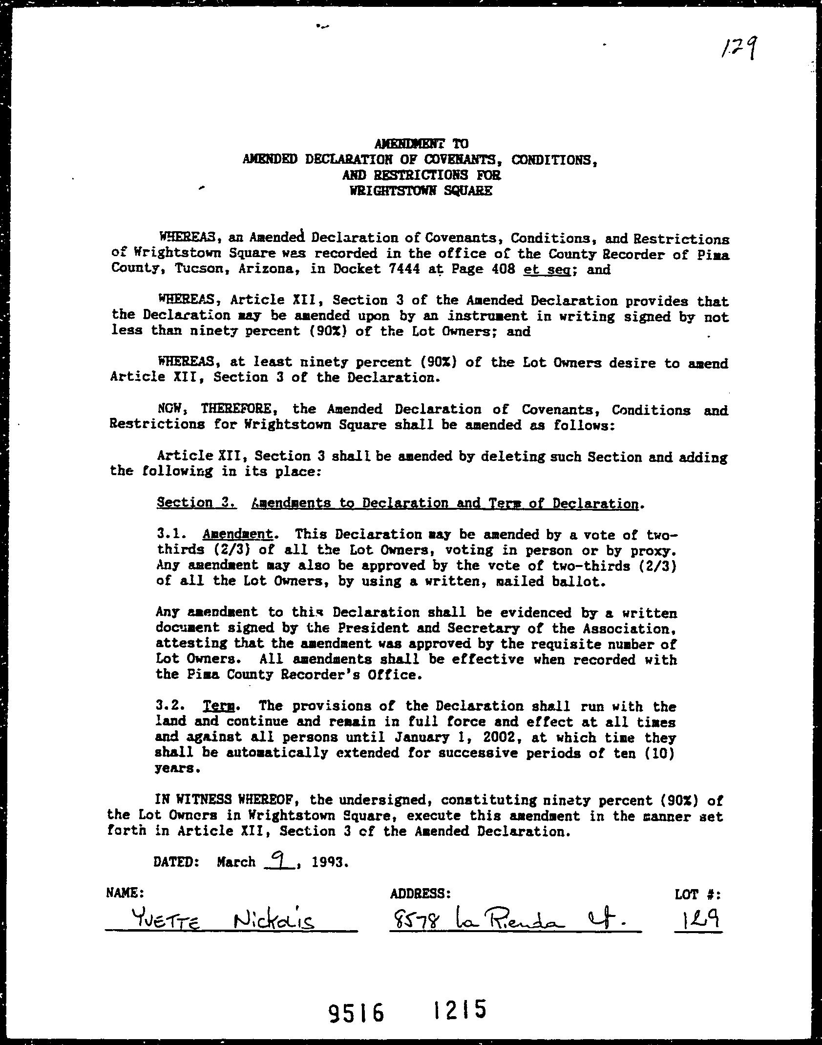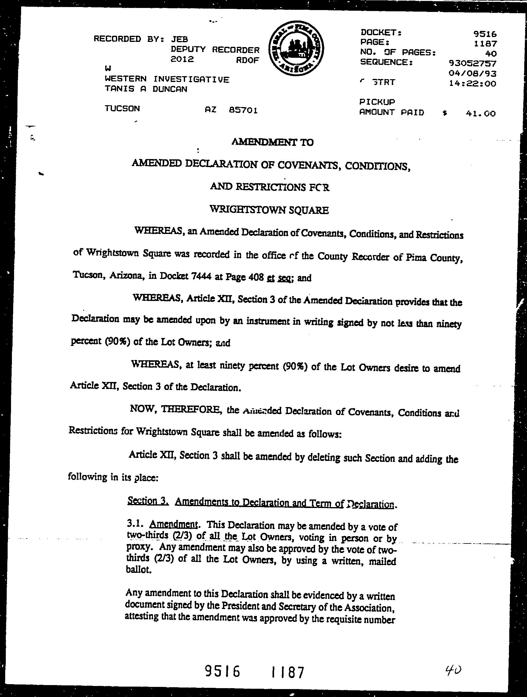 + FIRST AMERICAN TITLE, FC0, CCOR PIMA, AZ 08/12/2022 03:41PM AXDZ INVESTIGATIVE SEARCH RESULTS PAGE 1 OF 1 SEARCH PARAMETERS PARCEL: 133-07-2060 PARCEL: 133-07-2060 INSTRUMENT REC DATE OWNER: JUSTUS FAMILY TR 8999 1248 03/20/1991 SITUS: 1855 N LA RIENDA AV TUC MAIL: ATTN: JAMES R & MARJORIE H JUSTUS TR 1855 N LA RIENDA AVE TUCSON AZ 85710 PLAT: LOT 00062 BLOCK LEGAL: WRIGHTSTOWN SQUARE LOT 62 CURRENT TAXES INFORMATION THROUGH 07/28/2022 LAND IMPR EXEMPT RATE AREA SPECIAL DISTRICTS PRIMARY 13,350 0 0 11.6619 0150 SECONDARY 50 14,504 0 2.8778 2021 TOTAL TAX BILLED 1,718.12 2021 TAX AMT TAX DUE INTEREST DATE PAID TOTAL DUE FIRST HALF 859.06 0.00 0.00 10/04/2021 0.00 SECOND HALF 859.06 0.00 0.00 02/28/2022 0.00 TOTAL CURRENT TAXES DUE 08/22 0.00 09/22 0.00 IMPROVEMENTS RESIDENTIAL BLDG SQFT 1,123 FULL CASH VALUE 145,544 YEAR BUILT 1991 LAND USE 07 30 NUMBER OF STORIES 4.0 LOT SIZE 1 STDLT STORIES HEIGHT 0 SCHOOL DISTRICT 0150 EXTERIOR WALLS FRAME WOOD LAND FULL CASH VALUE 502 GRADE MATERIALS IMPR FULL CASH VALUE 145,042 SALES SALE DATE SALE AMOUNT INSTRUMENT TYPE SELLER NAME VALIDITY 03/20/1991 76,893 8999 1247 SD PIONEER TRUST CO T11491 ADDITIONAL PROPERTY INFORMATION STANDARD LAND USE: CONDOMINIUM END SEARCH