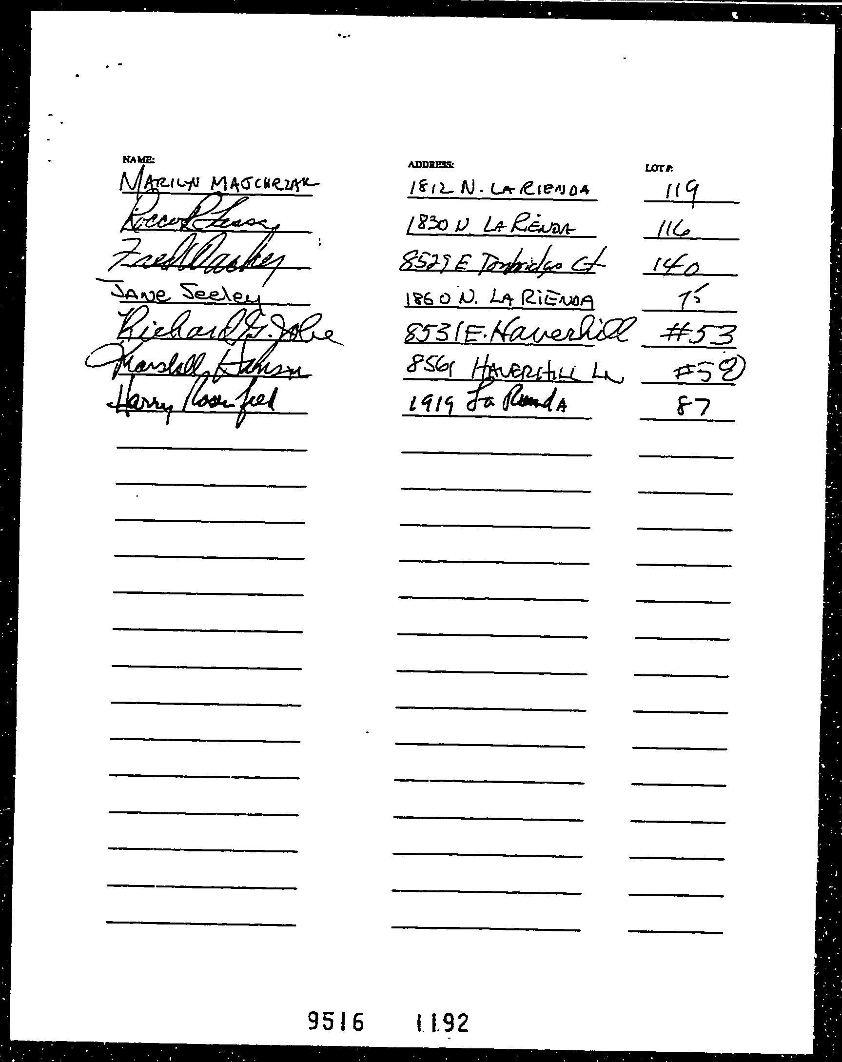 1884 N LA RIENDA AVE Distance 0.04 Miles Owner Name : Caruso Michael Subdivision : Wrightstown Square Total Value : $140,491 Recording Date : 08/10/1994 Bed / Bath : / 2 Property Tax : $1,827.50 Land Use : Condominium Living Area : 1,069 Stories : 1 APN : 133-07-2150 Yr Blt / Eff Yr Blt : 1989 / 8560 E WRIGHTSTOWN RD Distance 0.07 Miles Owner Name : Kuhn Marla Recording Date : 10/23/2020 Sale Date : 10/20/2020 Sale Price : $545,000 Total Value : $403,592 Property Tax : $4,715.71 Bed / Bath : / 2 Lot Acres : 2.70 Land Use : Sfr Living Area : 2,142 Stories : 1 APN : 133-07-015A Yr Blt / Eff Yr Blt : 1958 / 8650 E WRIGHTSTOWN RD Distance 0.08 Miles Owner Name : Froyland Tracy Lee Recording Date : 03/15/2000 Sale Date : 03/08/2000 Sale Price : $188,000 Total Value : $476,797 Property Tax : $6,140.07 Bed / Bath : / 3 Lot Acres : 3.92 Land Use : Sfr Living Area : 2,110 Stories : 1 APN : 133-07-0220 Yr Blt / Eff Yr Blt : 1950 / 8554 E WRIGHTSTOWN RD Distance 0.1 Miles Owner Name : Dodd James A Yr Blt / Eff Yr Blt : 1957 / Total Value : $129,709 Property Tax : $1,655.83 Bed / Bath : / 1 Lot Acres : 0.57 Land Use : Sfr Living Area : 898 Stories : 1 APN : 133-07-017B Customer Name : Chantel Cortez Customer Company Name : FIRST AMERICAN TITLE Prepared On : 08/12/2022 © 2022 CoreLogic. All rights reserved