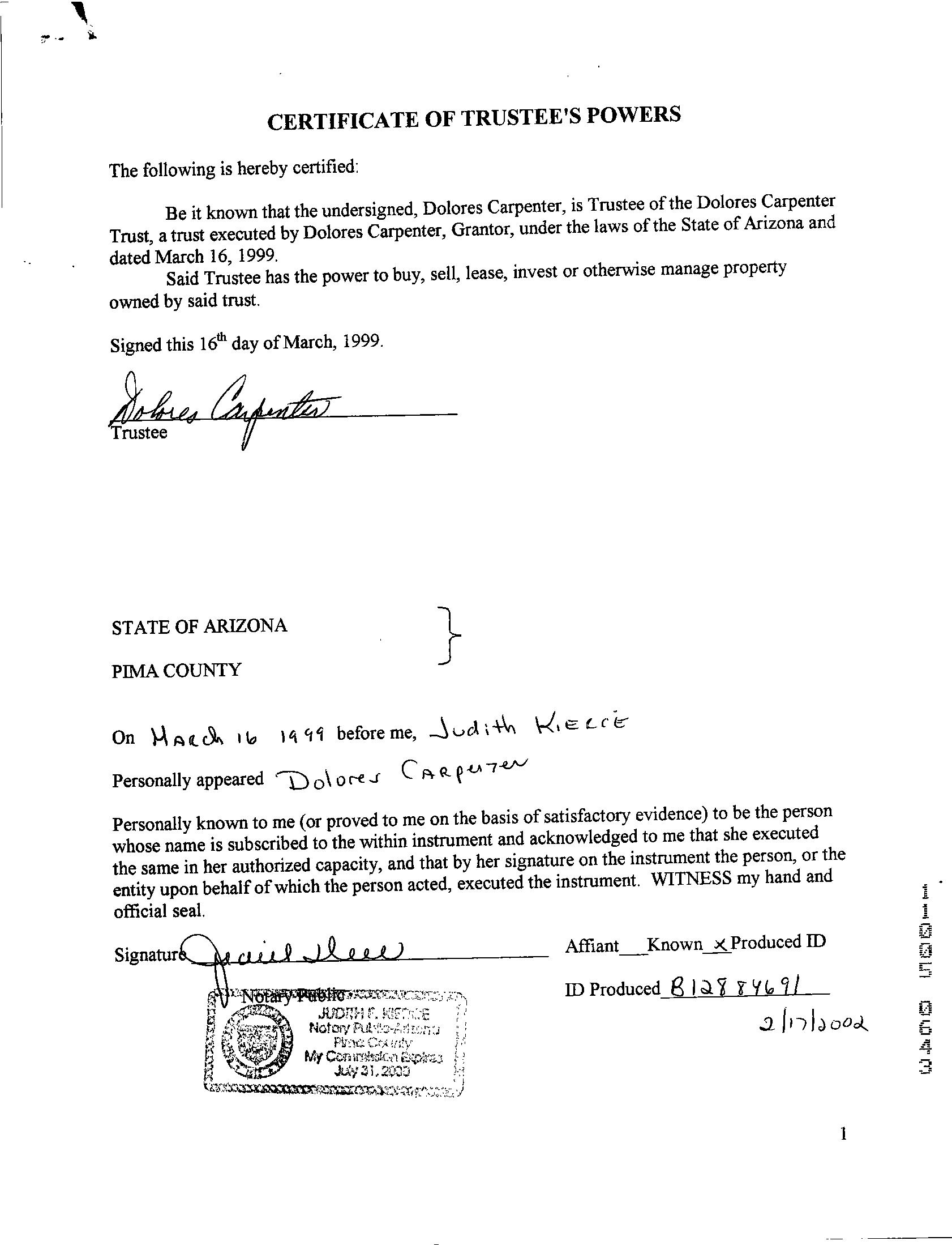 Mailing Address : 6925 E Calle Osito, Tucson AZ 85710-5453 C003