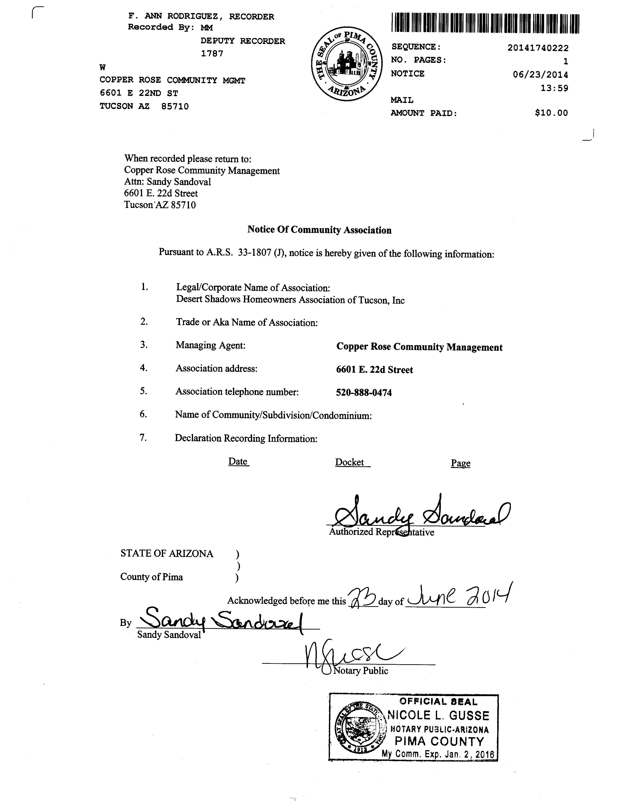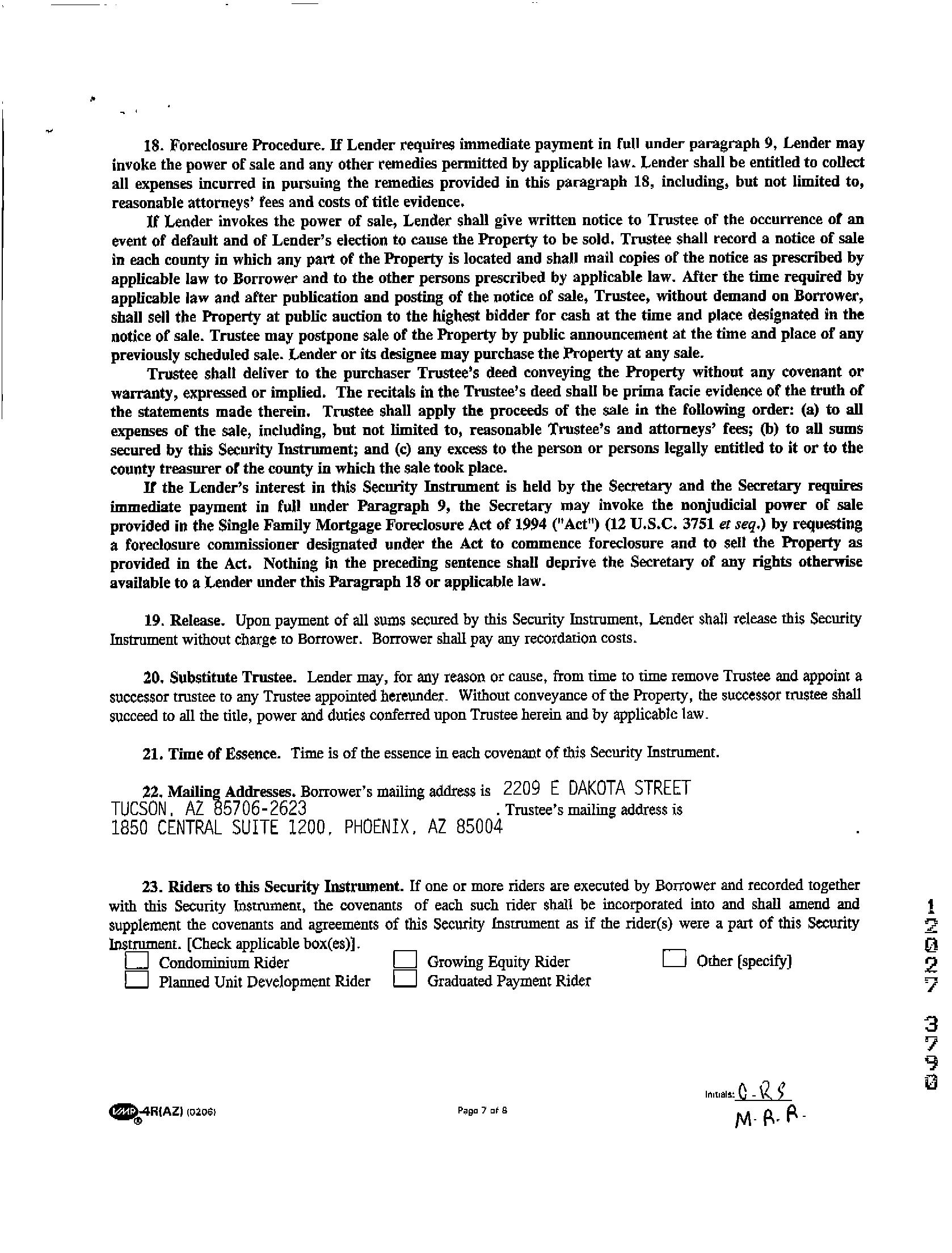 Mailing Address : 2209 E Dakota St, Tucson AZ 85706-2623 C012
