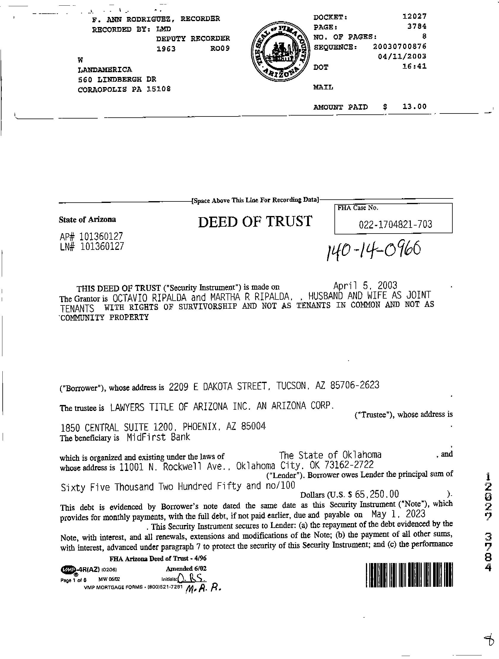 Recording/Sale Date : 04/11/2003 / 04/05/2003