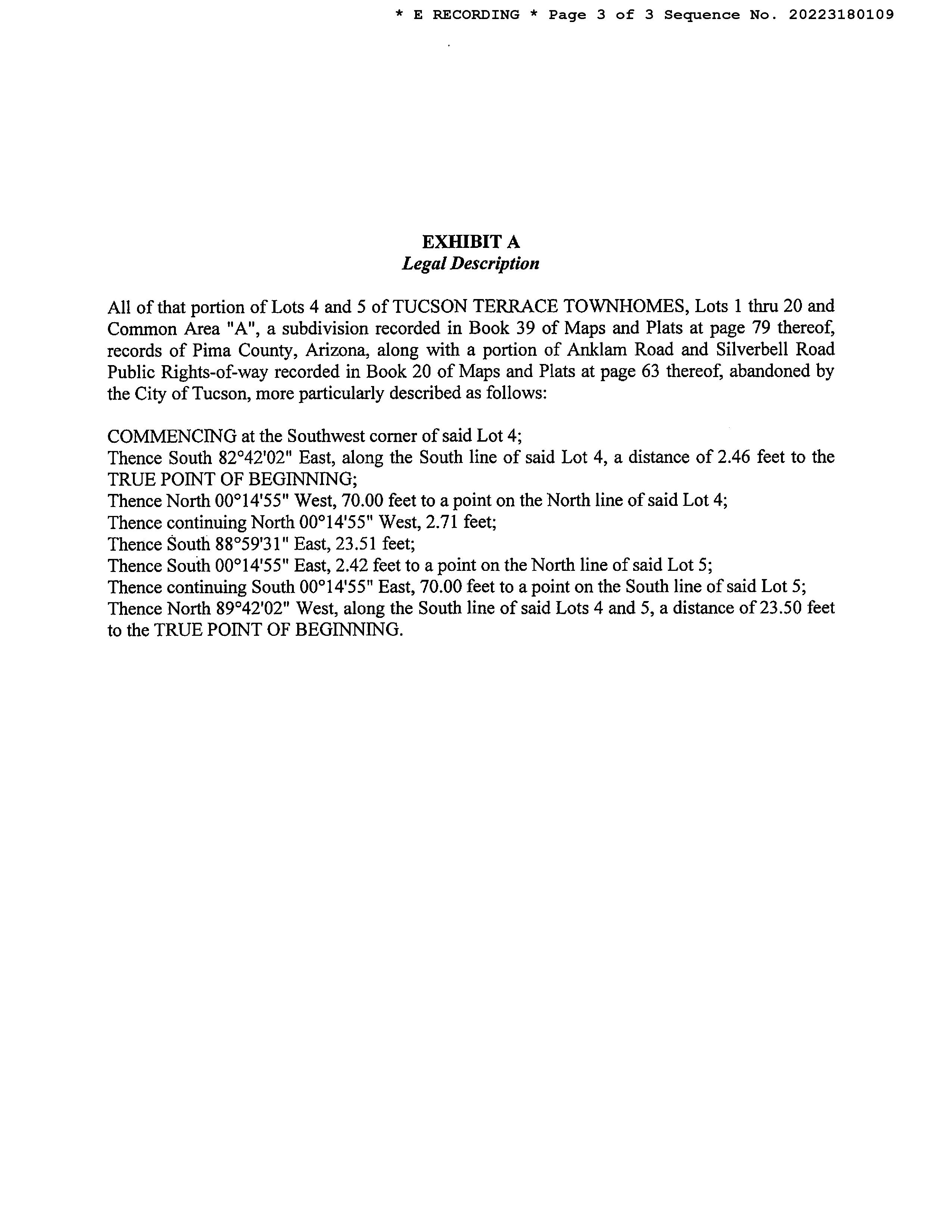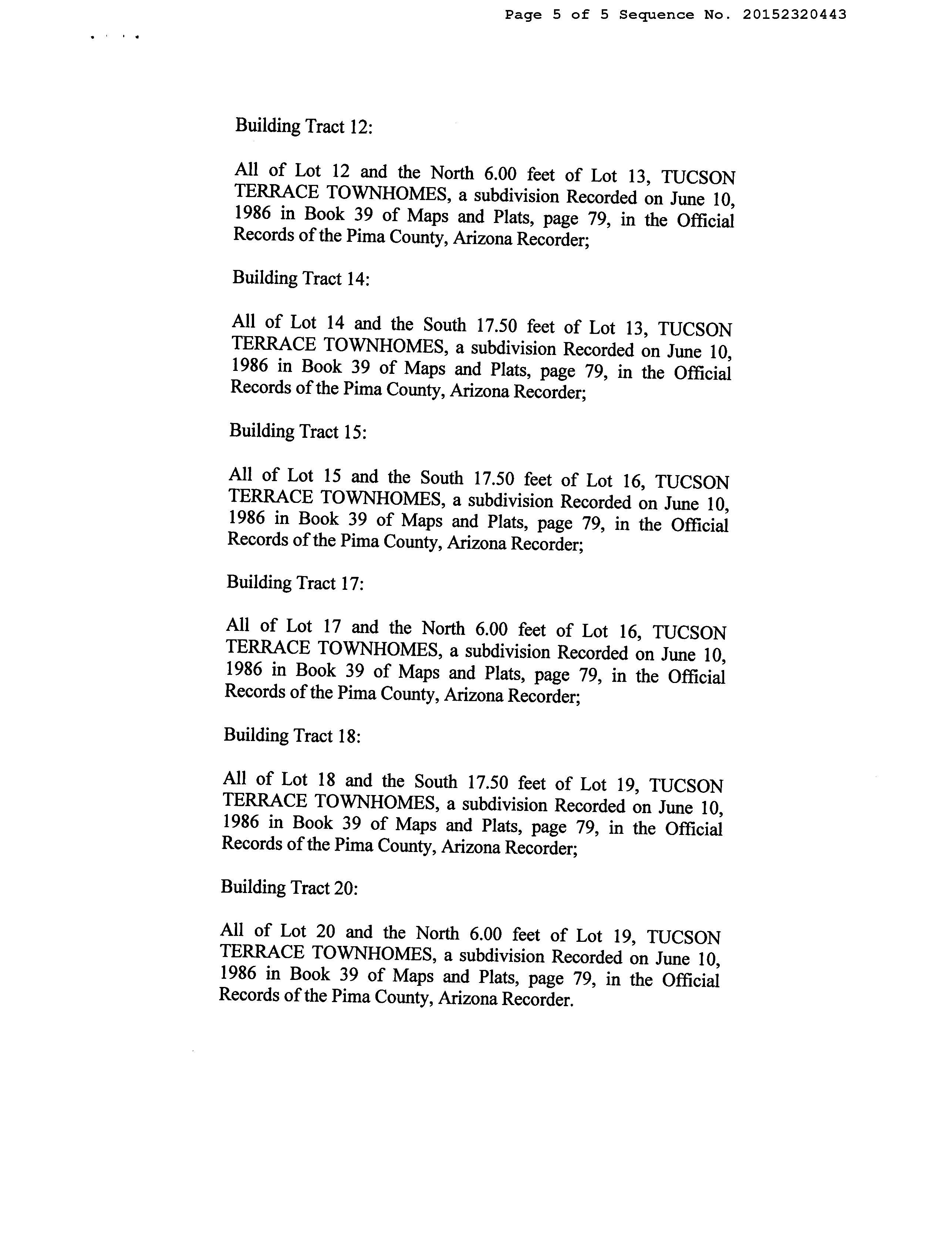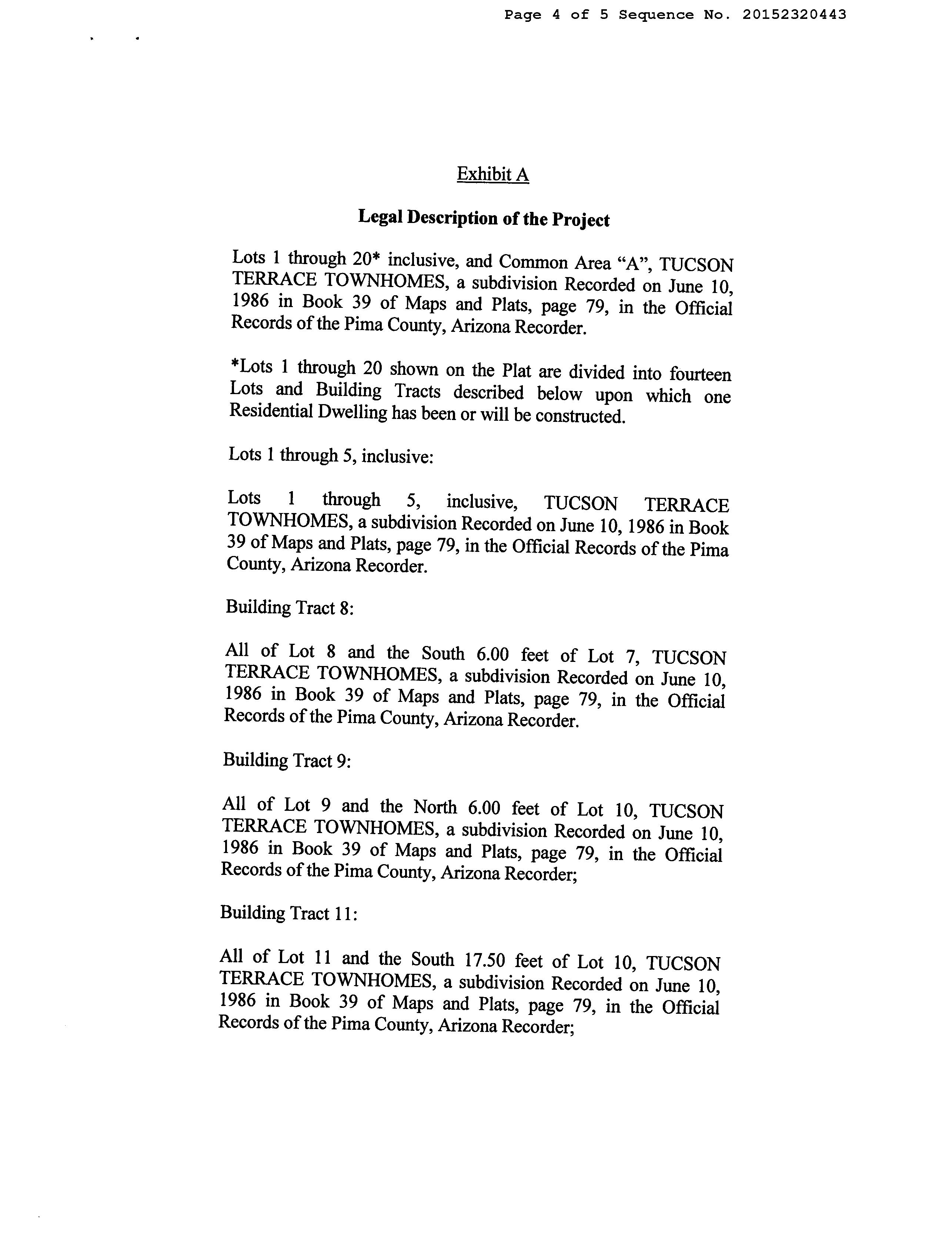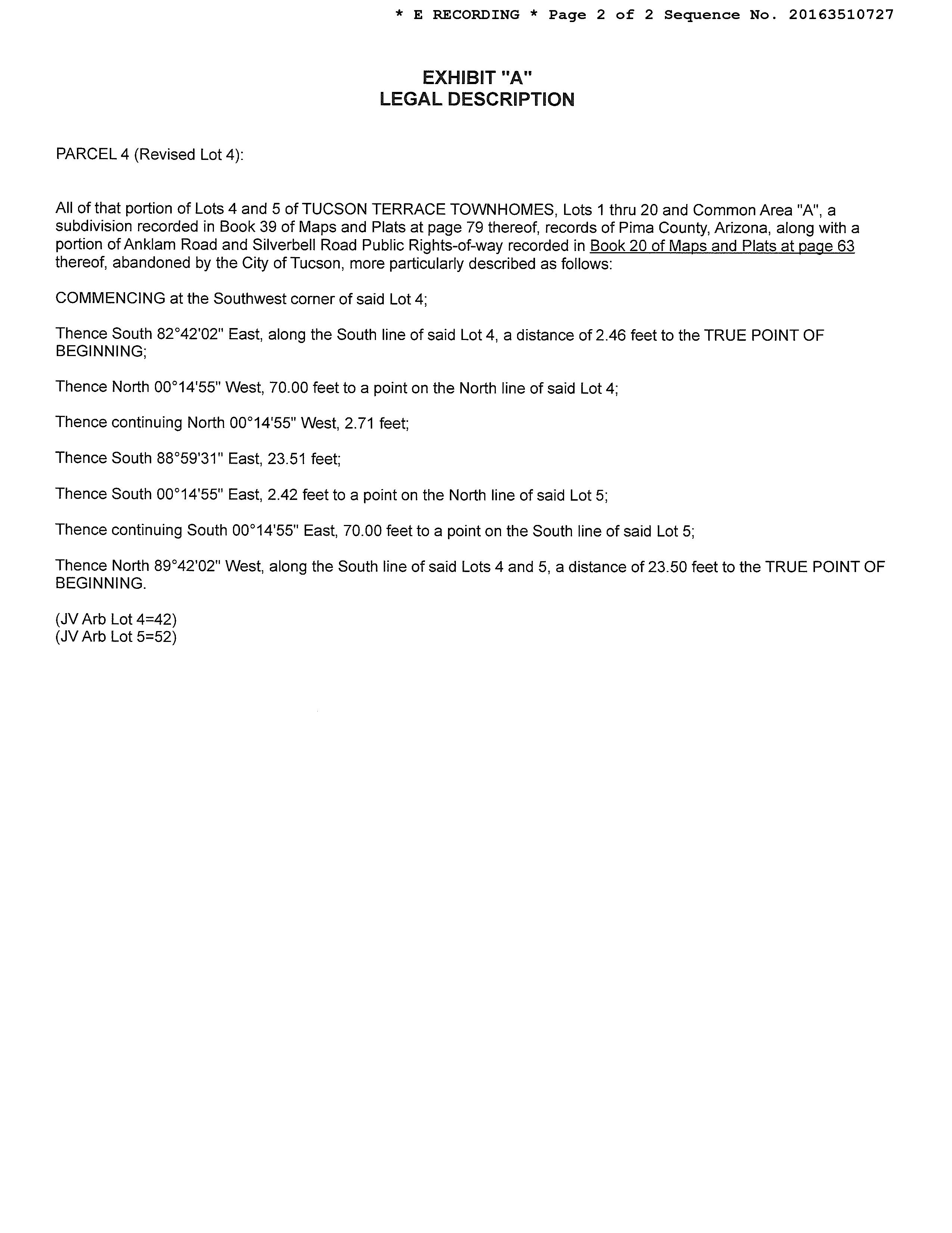 Legal Description : Tucson Terrace Townhomes Lot 4 & Wly Ptn Lot 5 & Ptn Aband Rd Exc Wly Ptn Lot 4 County : Pima, Az