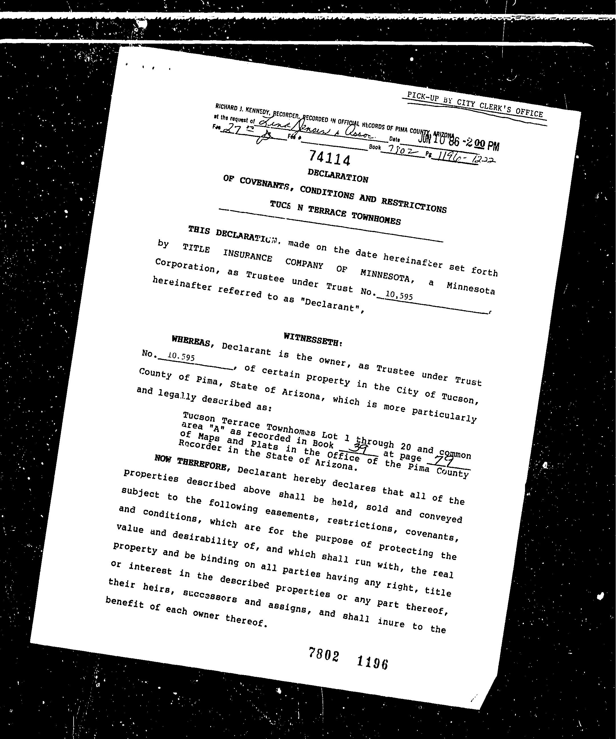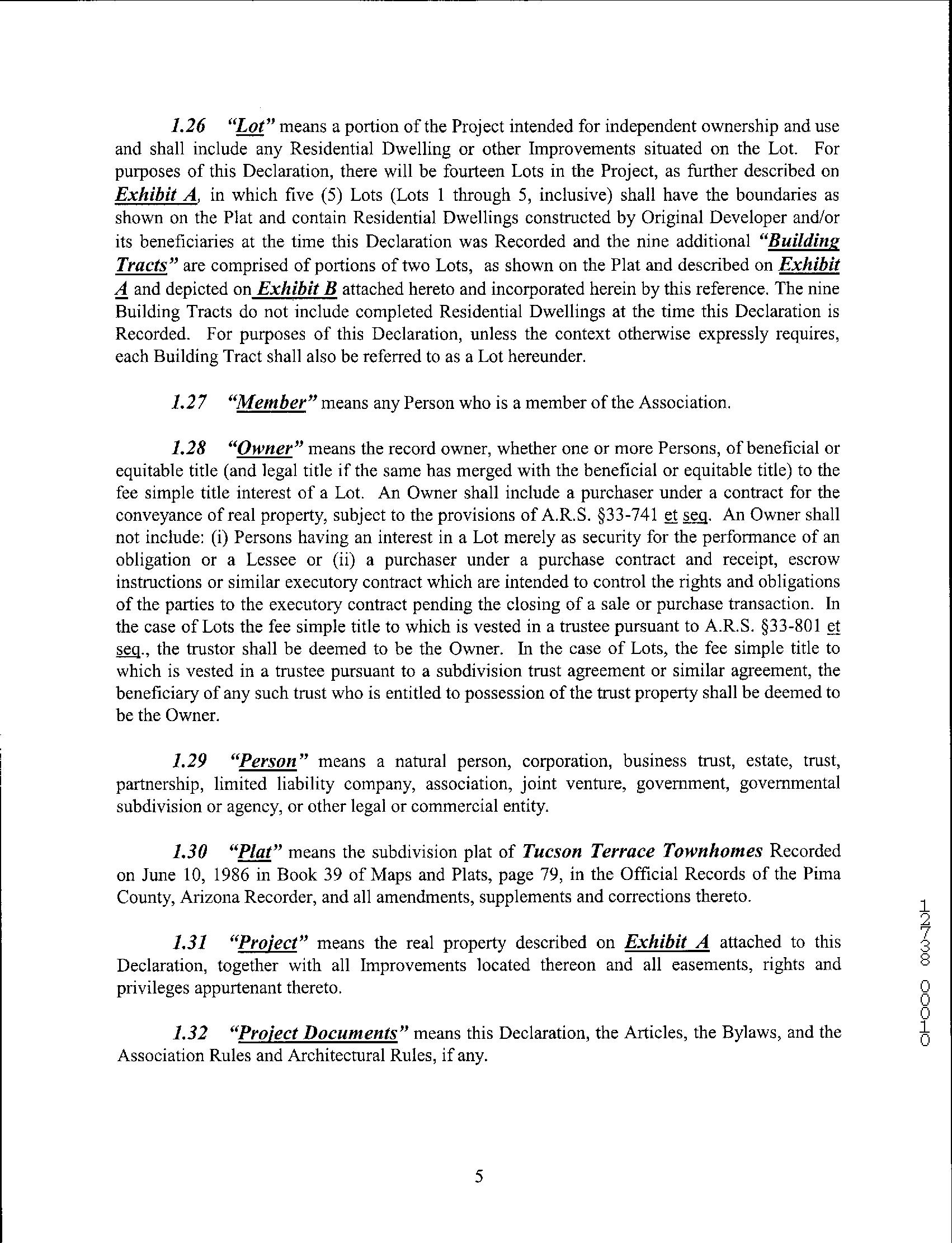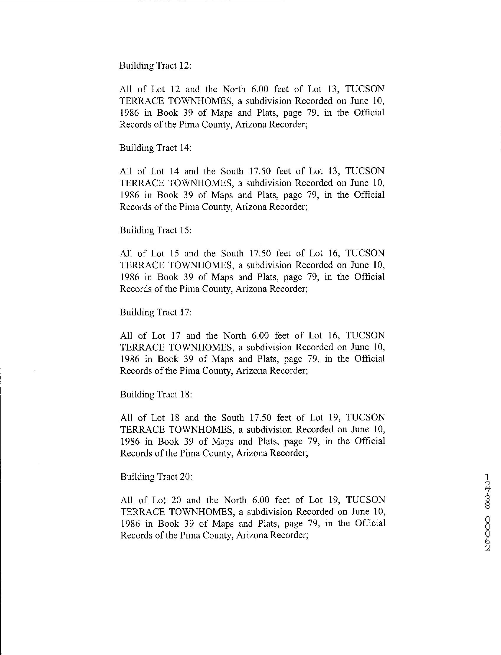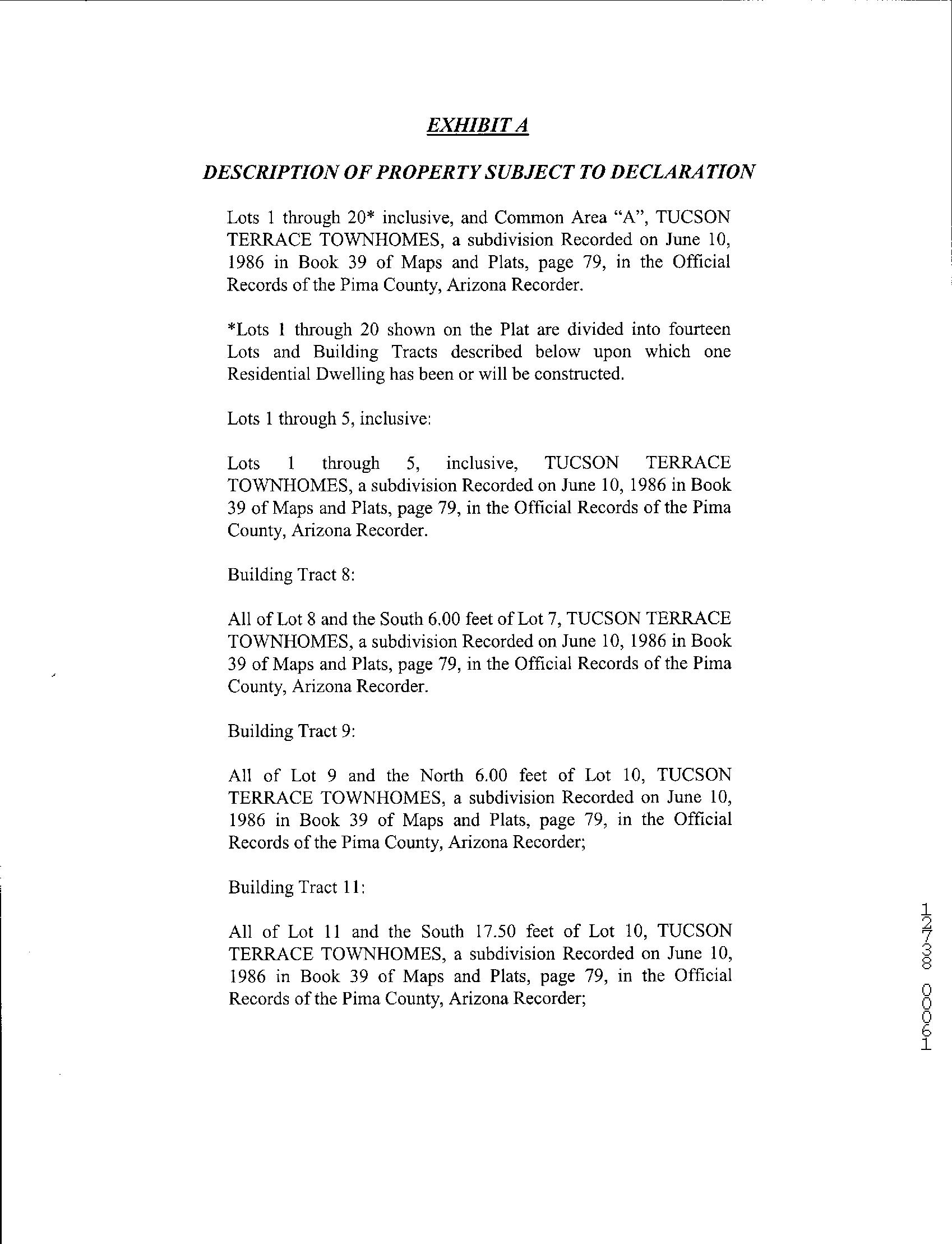 Legal Description : Tucson Terrace Townhomes Lot 4 & Wly Ptn Lot 5 & Ptn Aband Rd Exc Wly Ptn Lot 4 County : Pima, Az