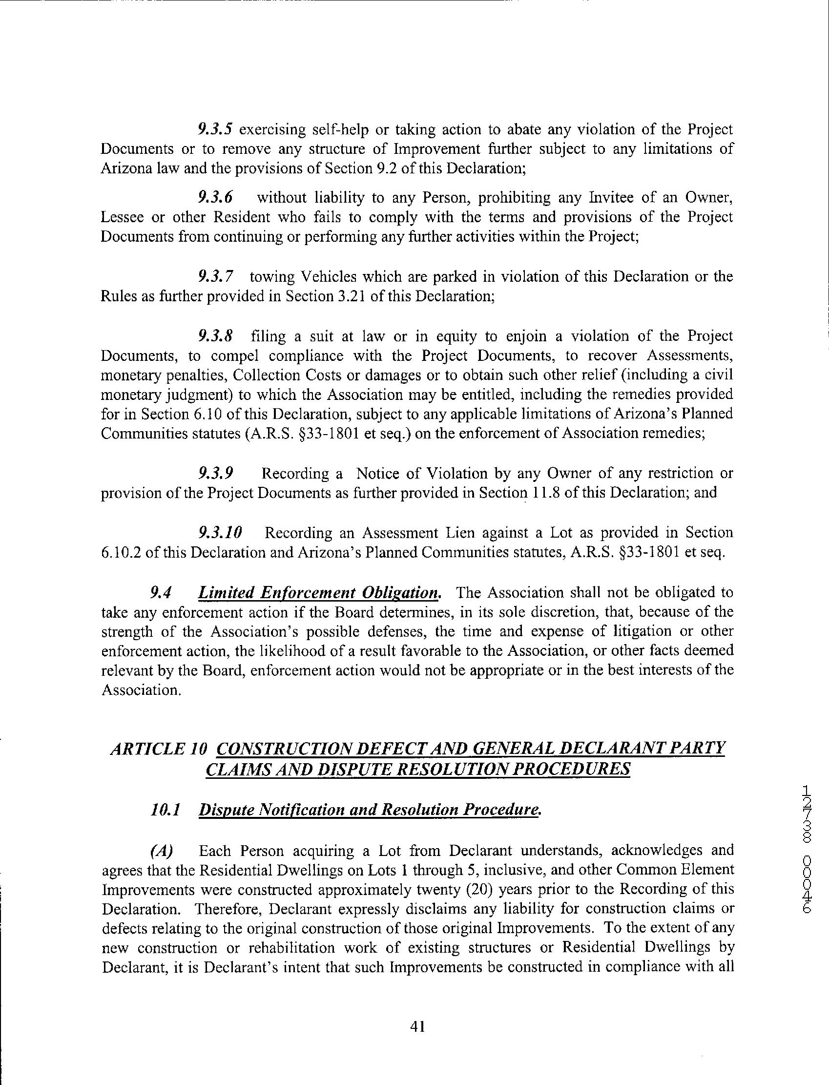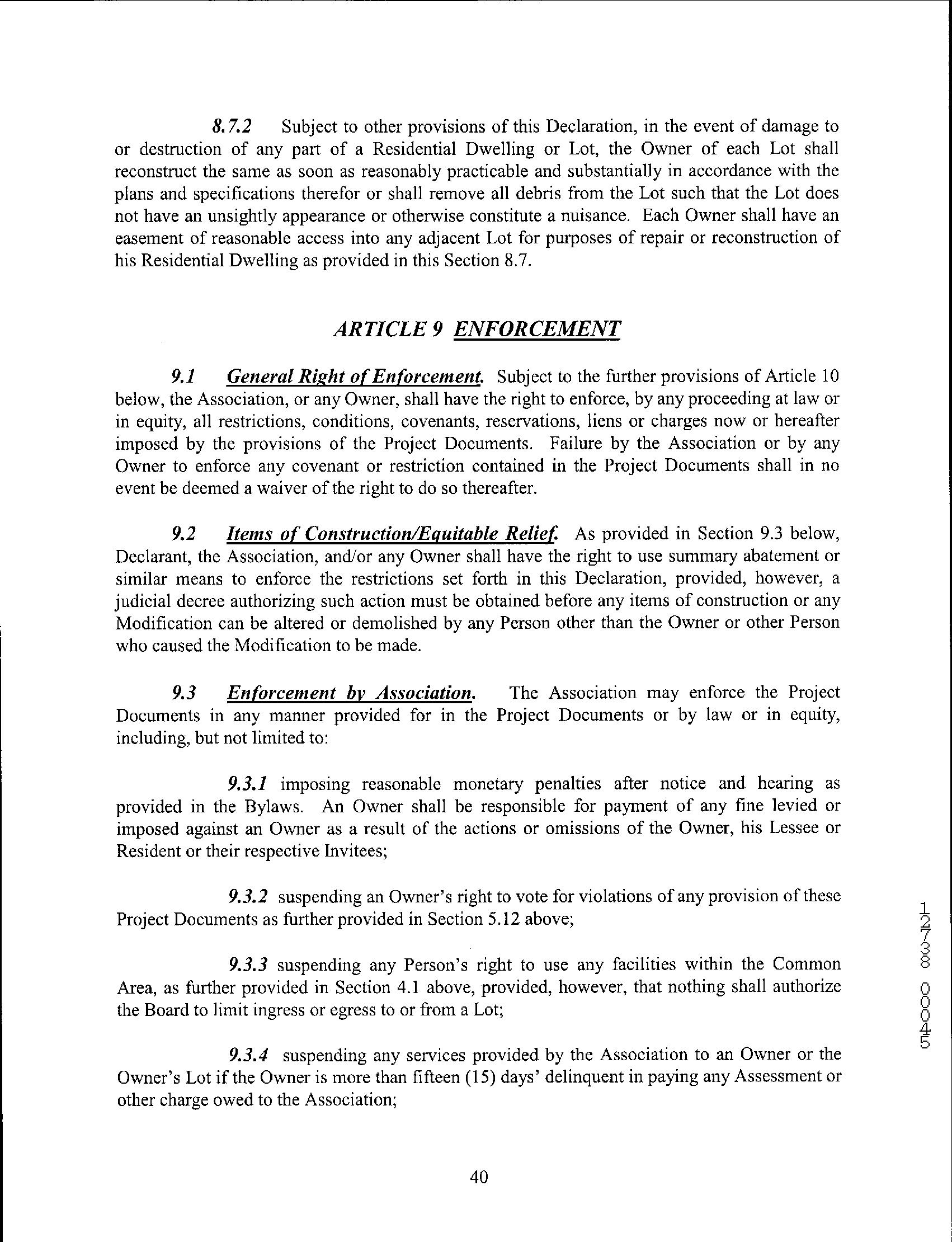 Restrictive covenant violations