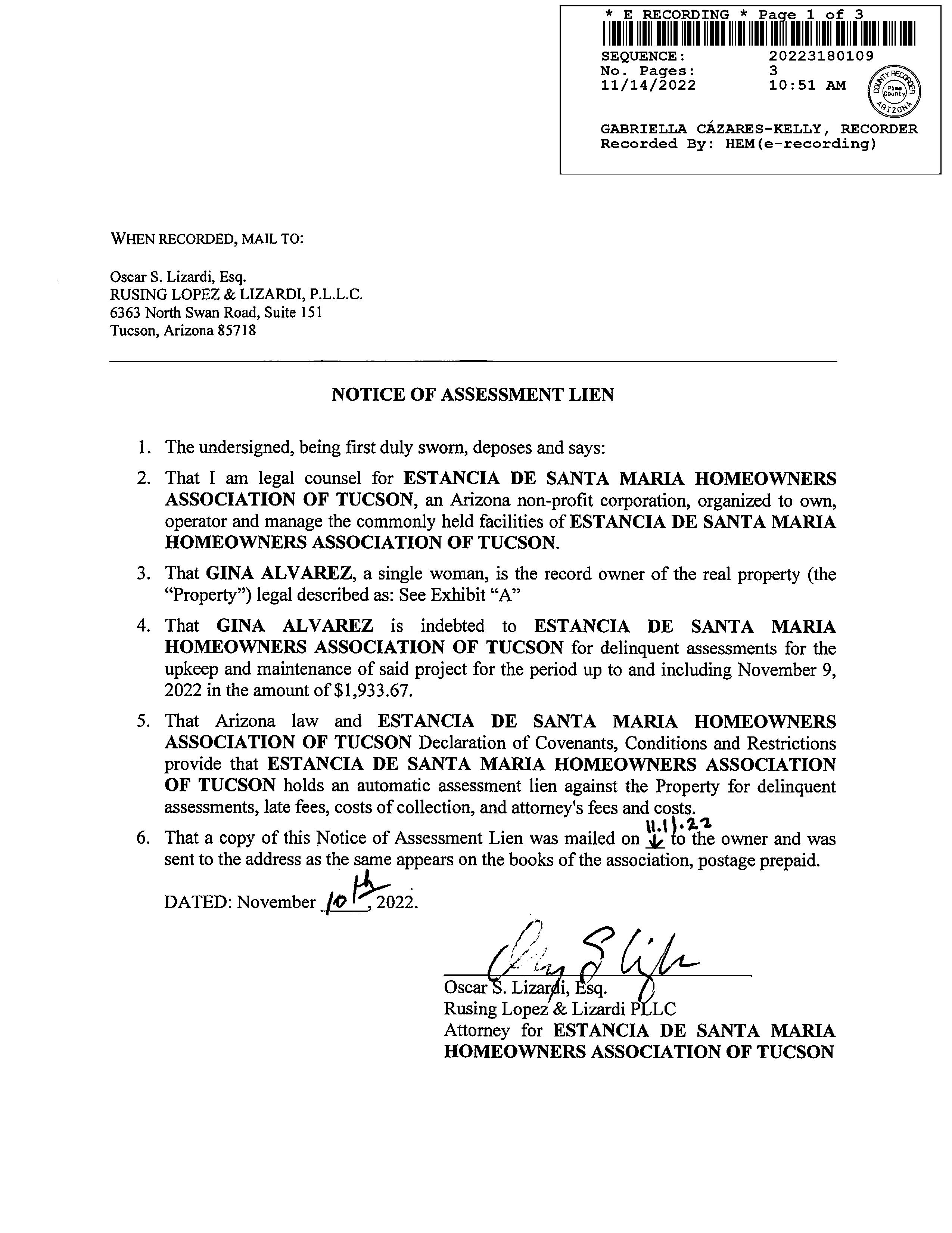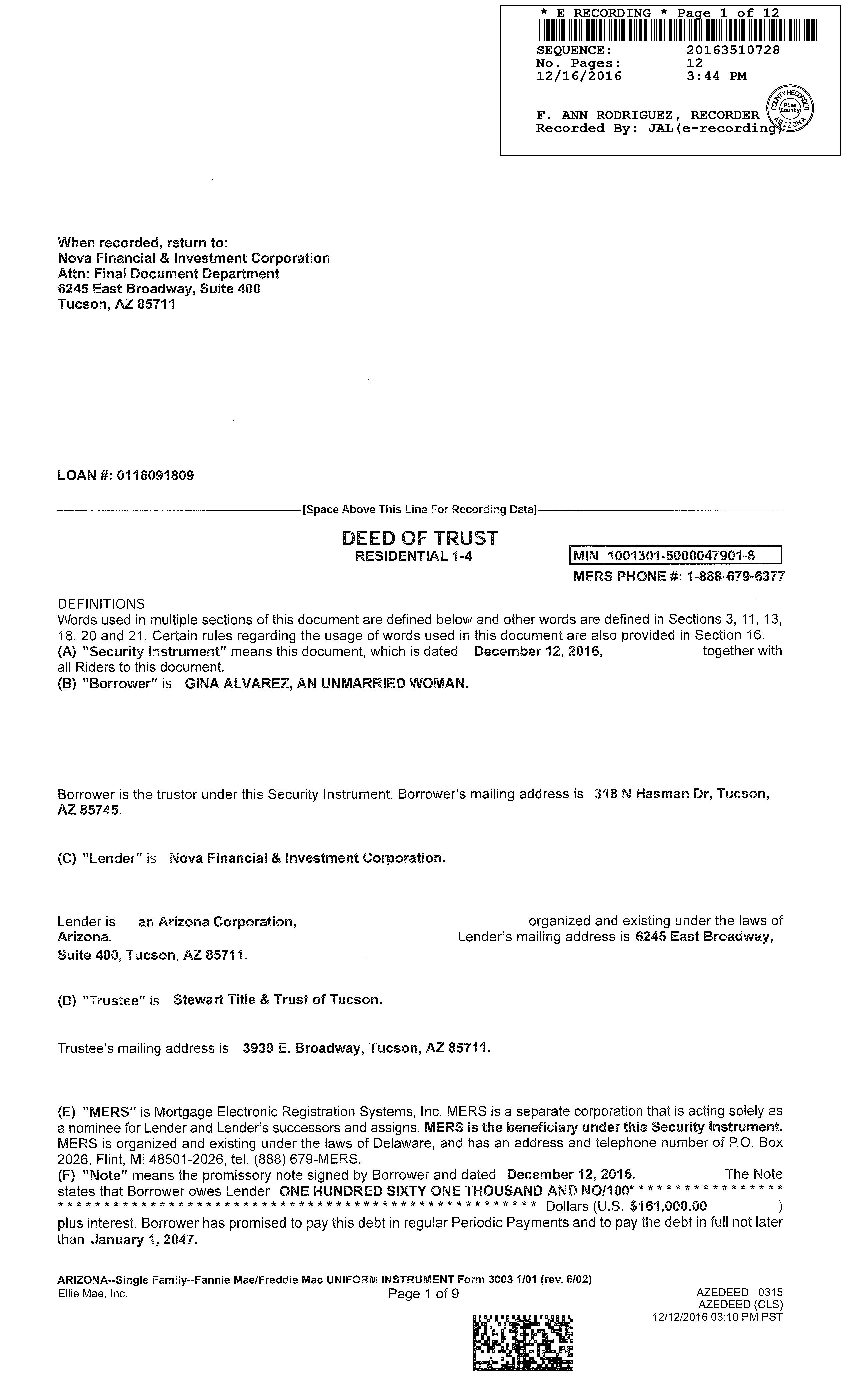 Owner Name : Alvarez Martha L Mailing Address : 318 N Hasman Dr, Tucson AZ 85745-2657 C026