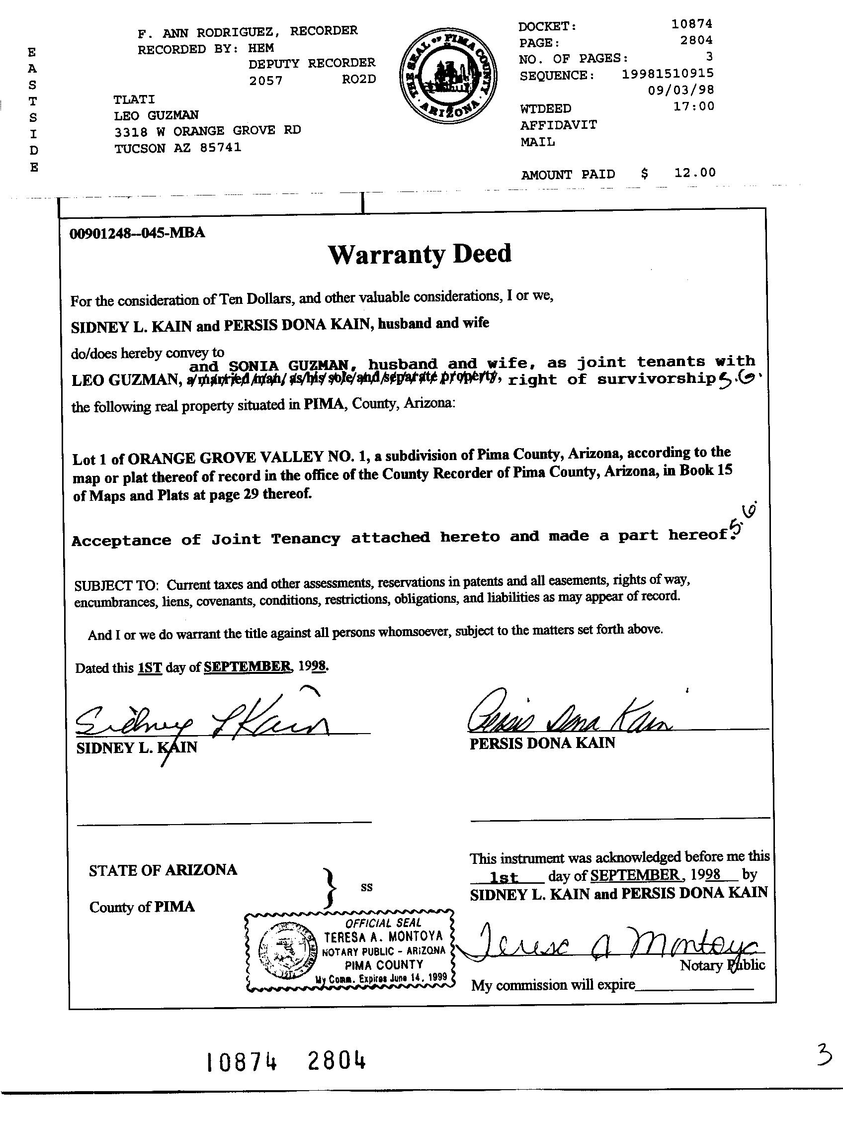 Deed Type : Warranty Deed