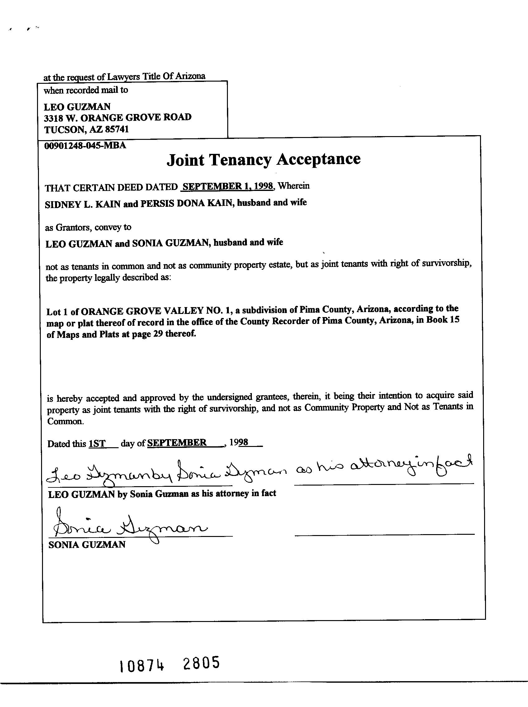 Owner Name: Guzman Leo /Guzman Sonia APN / Alternate APN: 101-04-0010 / Deed Type: Warranty Deed Land Use: Sfr Subdivision / Tract: Orange Grove Valley 01 / Lot Size: 10,633 Year Built / Eff: 1962 /