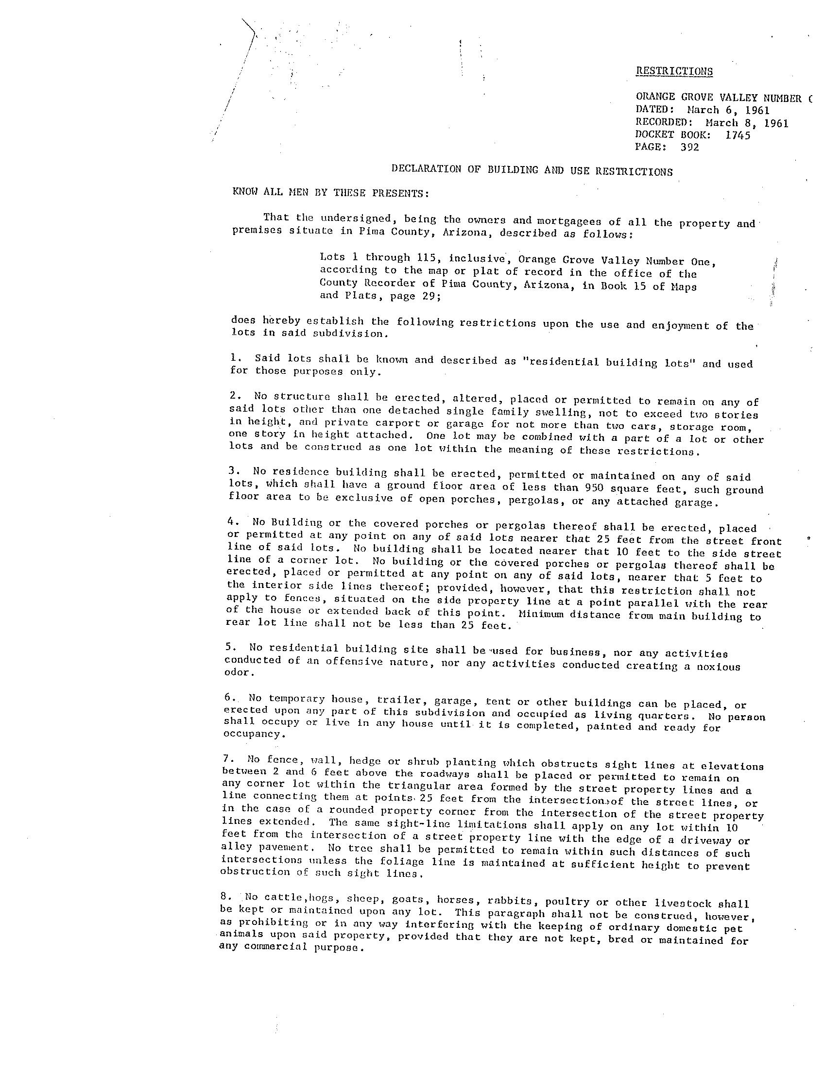Legal Description : Orange Grove Valley No 1 Lot 1