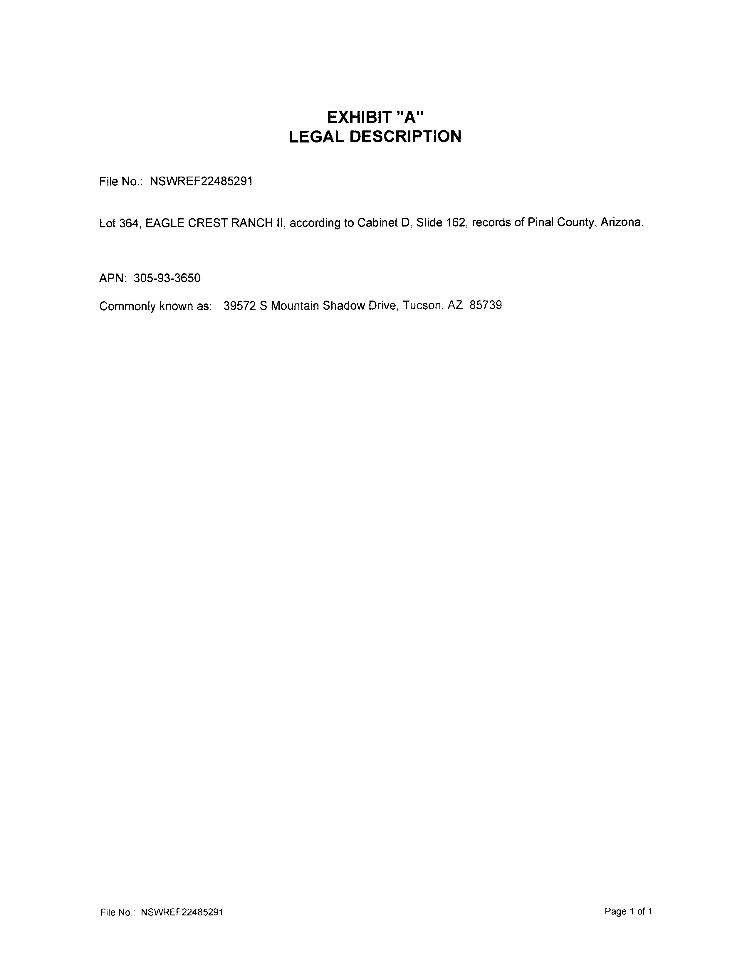 Subject Property : 39572 S Mountain Shadow Dr Tucson AZ 85739