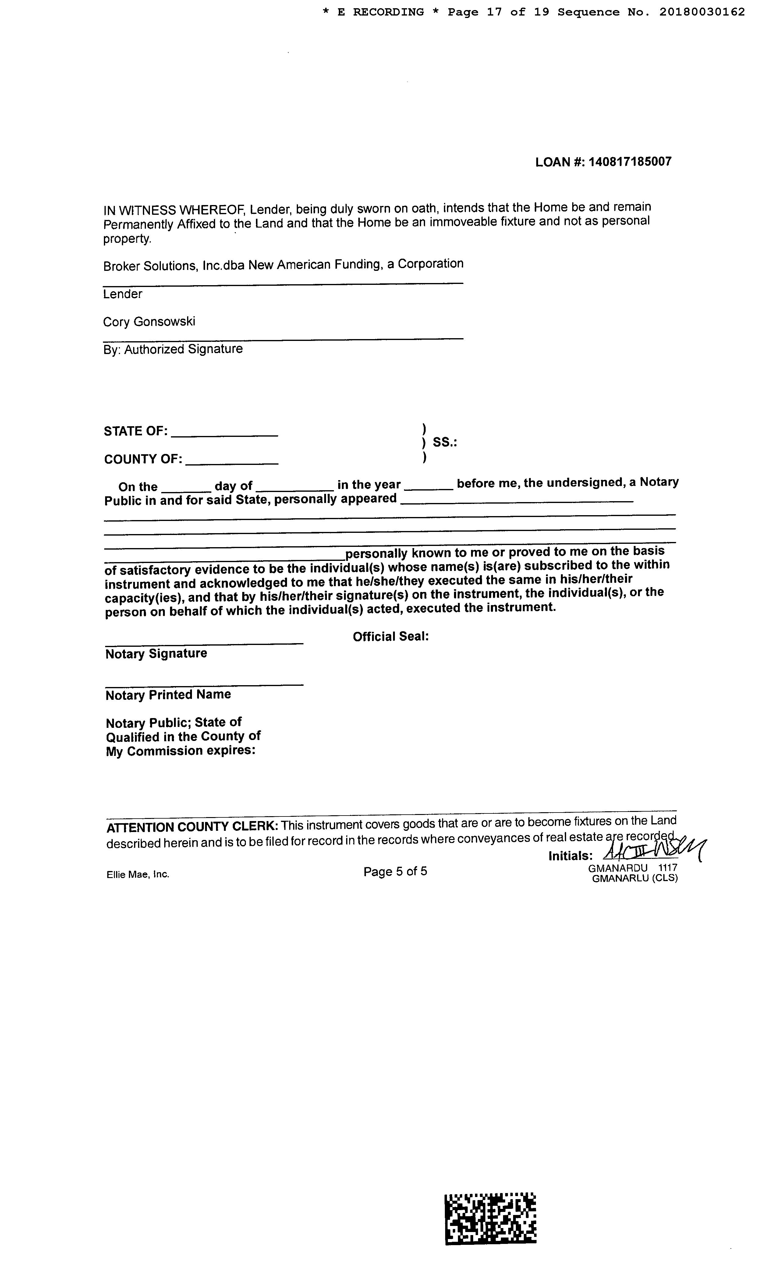 Recording/Sale Date : 01/03/2018 / 12/20/2017 1st Mtg Amount/Type : $152,192 / Fha