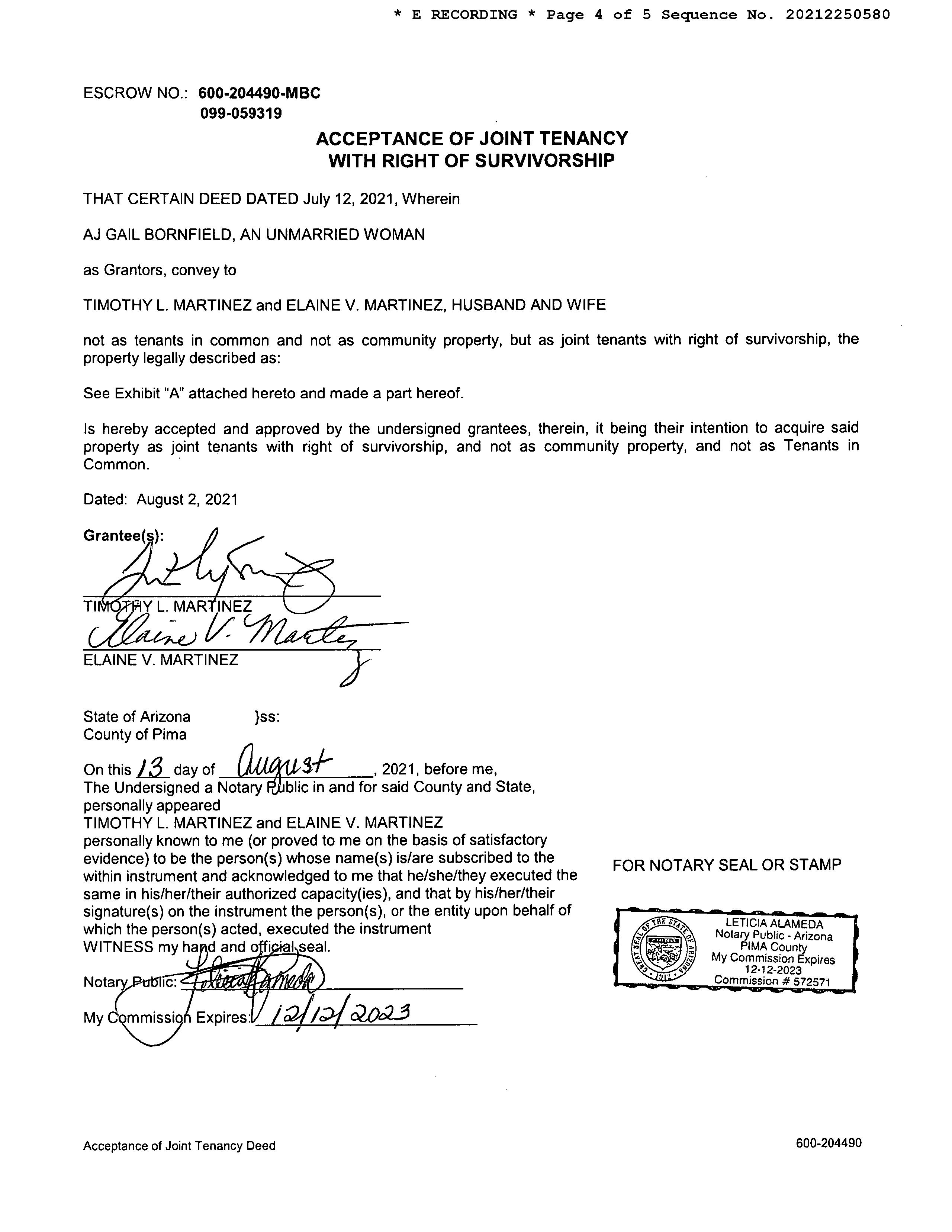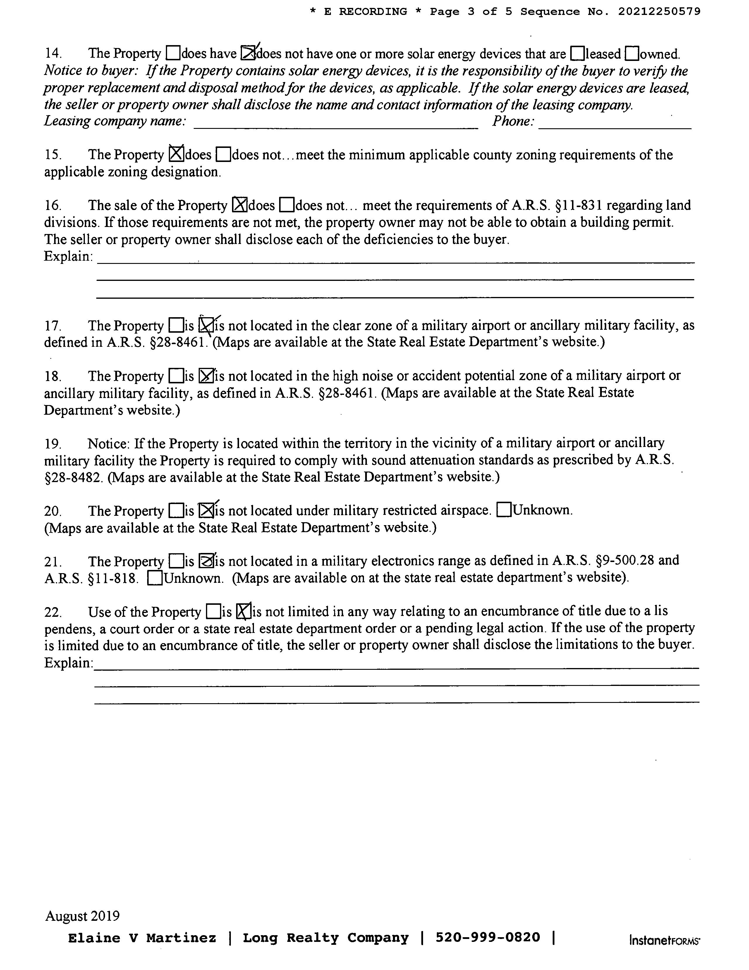 Owner Name: Marinez Timothy L /Marinez Elaine V APN / Alternate APN: 222-30-073B / Deed Type: Warranty Deed Land Use: Mobile Home Subdivision / Tract: / Lot Size: 37,462 Year Built / Eff: 1991 /1991 Rec. Date / Price: 08/13/2021 / $133,500 Living Area: # of units: Document #: 2250580