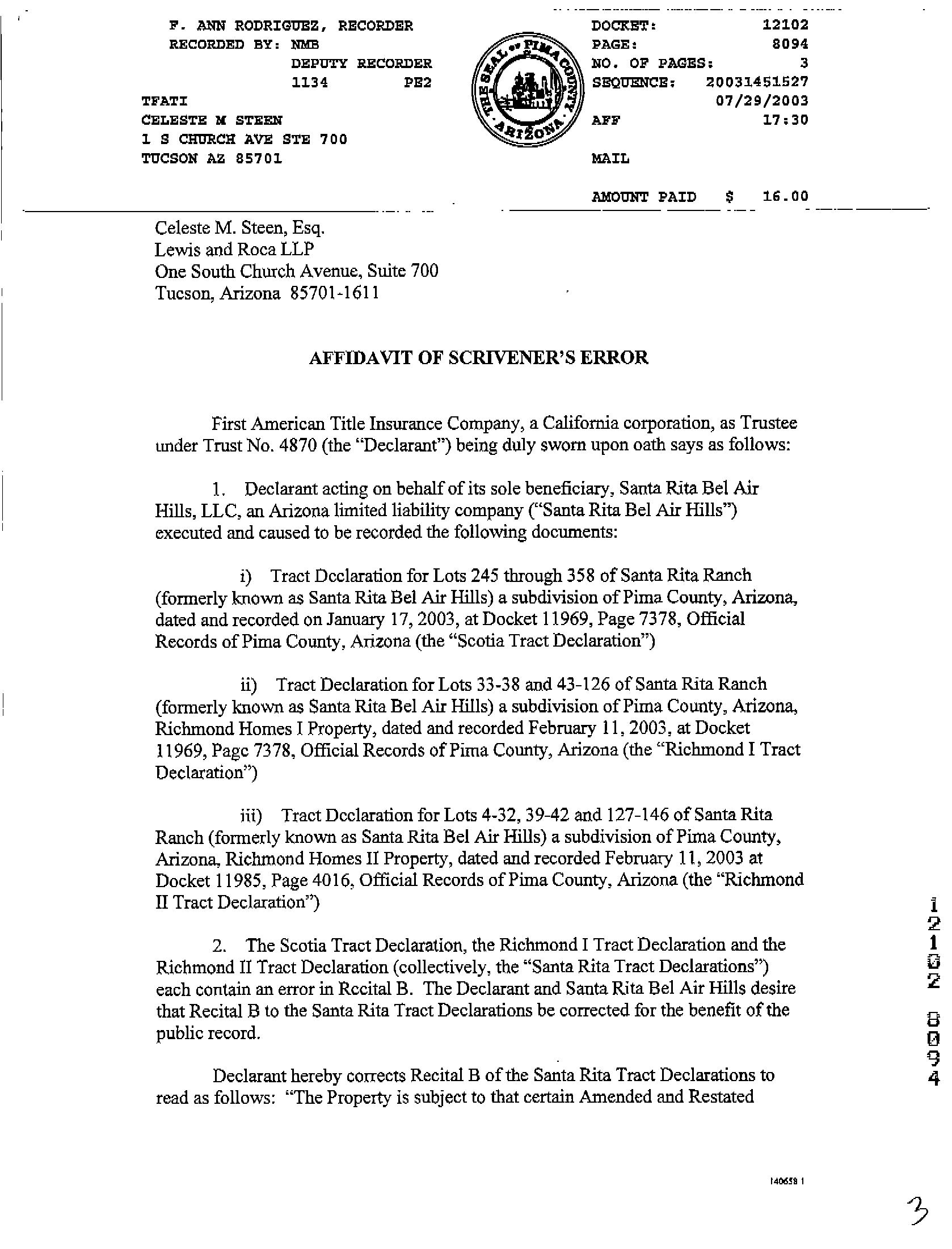 Subdivision / Tract: Santa Rita Ranch / Lot Size: 7,243 Year Built / Eff: 2003 / Rec. Date / Price: 03/28/2007 / $243,000 Living Area: 1,789 # of units: Document #: 13021-5763 Bedrooms: Pool: Pool