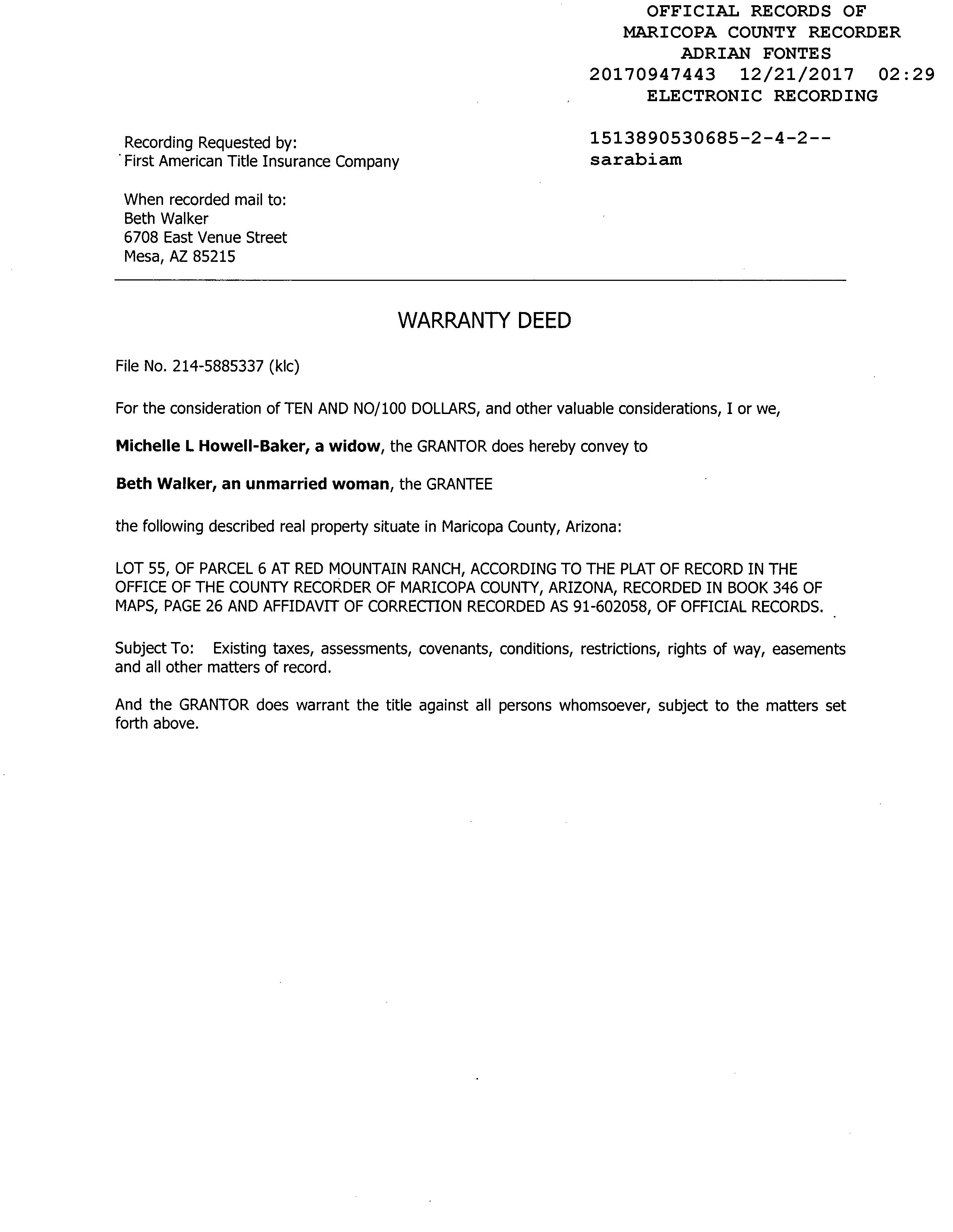 Legal Description : Lot 55 Parcel 6 At Red Mountain Ranch Mcr 346-26