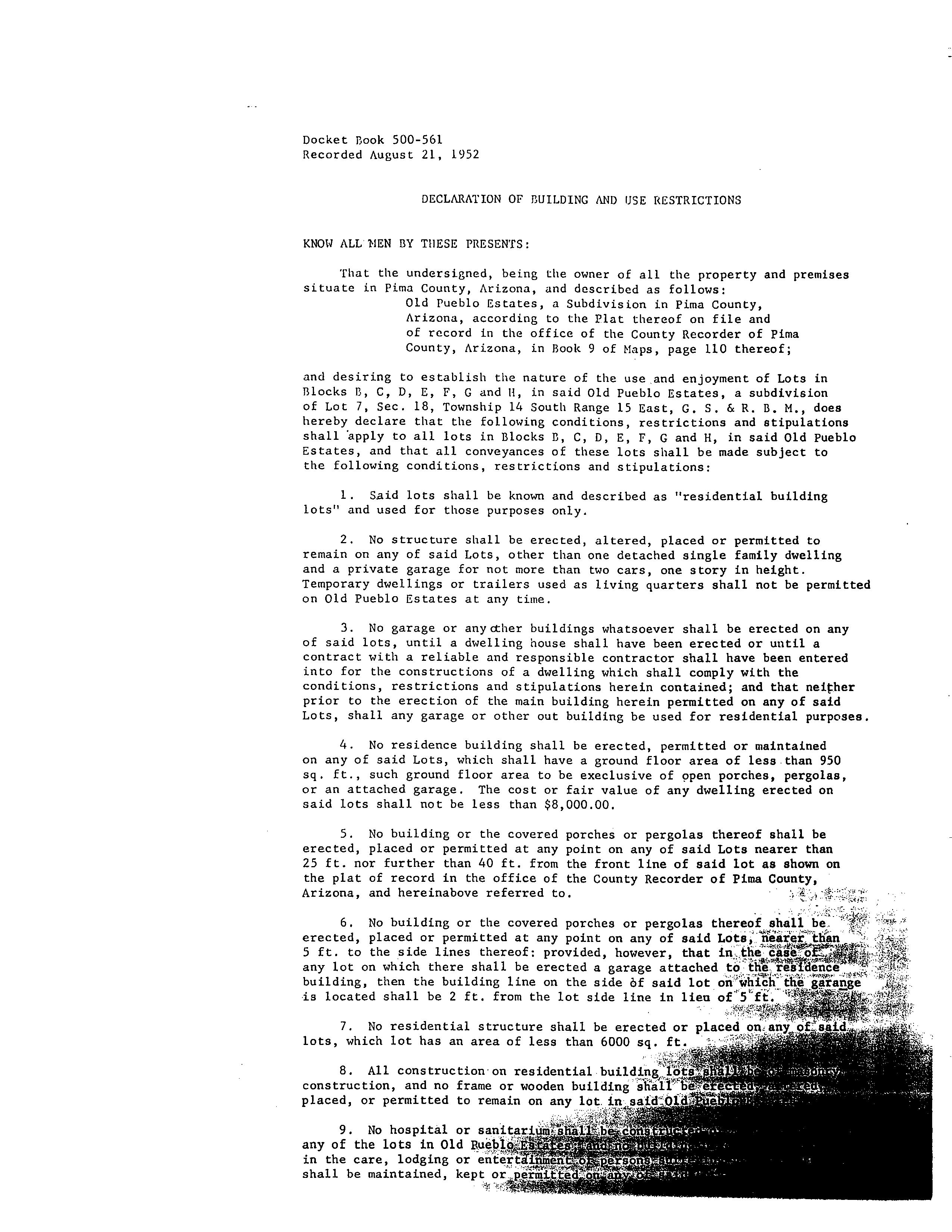 Legal Description : Old Pueblo Estates Lot 1 Blk D