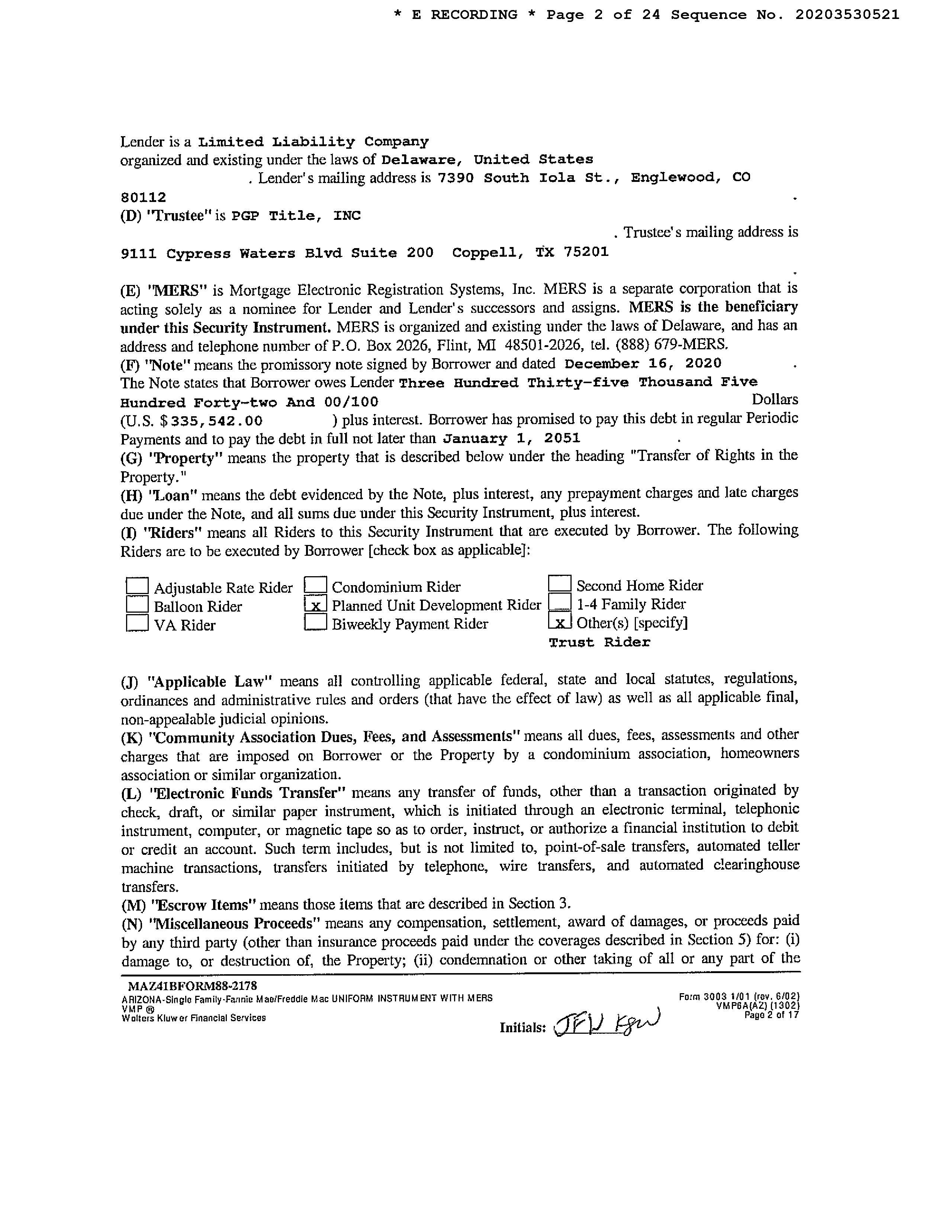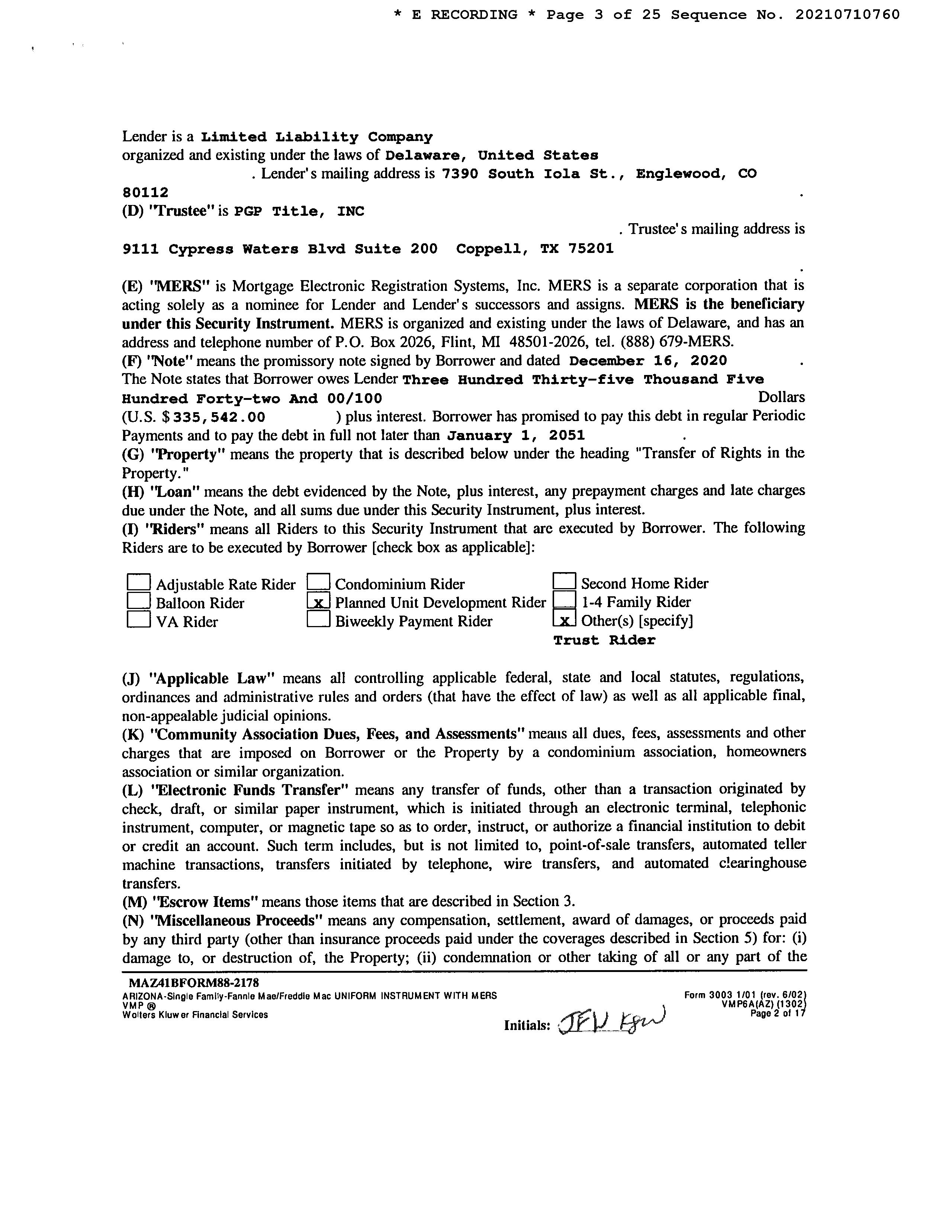 Recording/Sale Date : 12/18/2020 / 12/11/2020 1st Mtg Amount/Type : $335,542 / Cnv