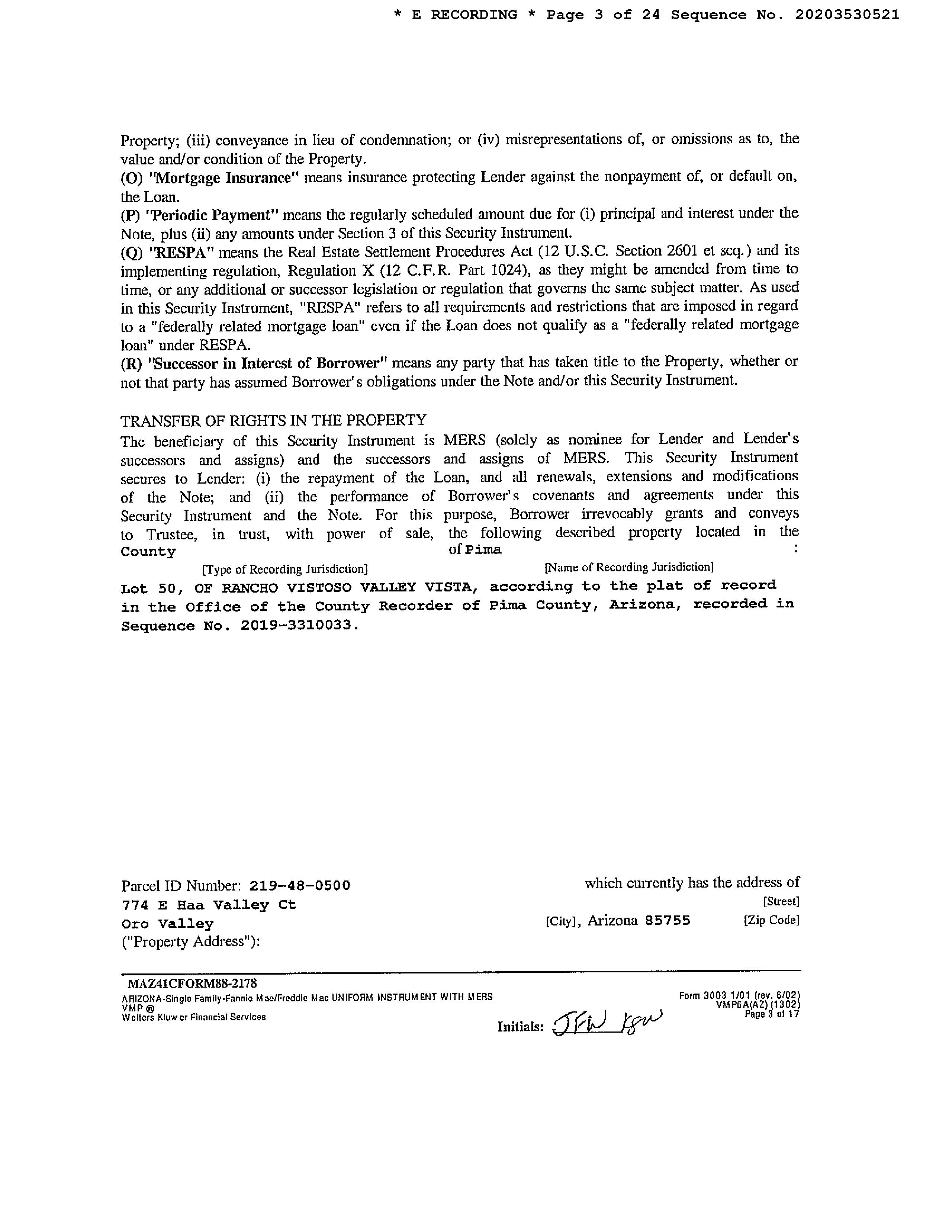 Legal Description : Rancho Vistoso Valley Vista Sq20193310033 Lot 50