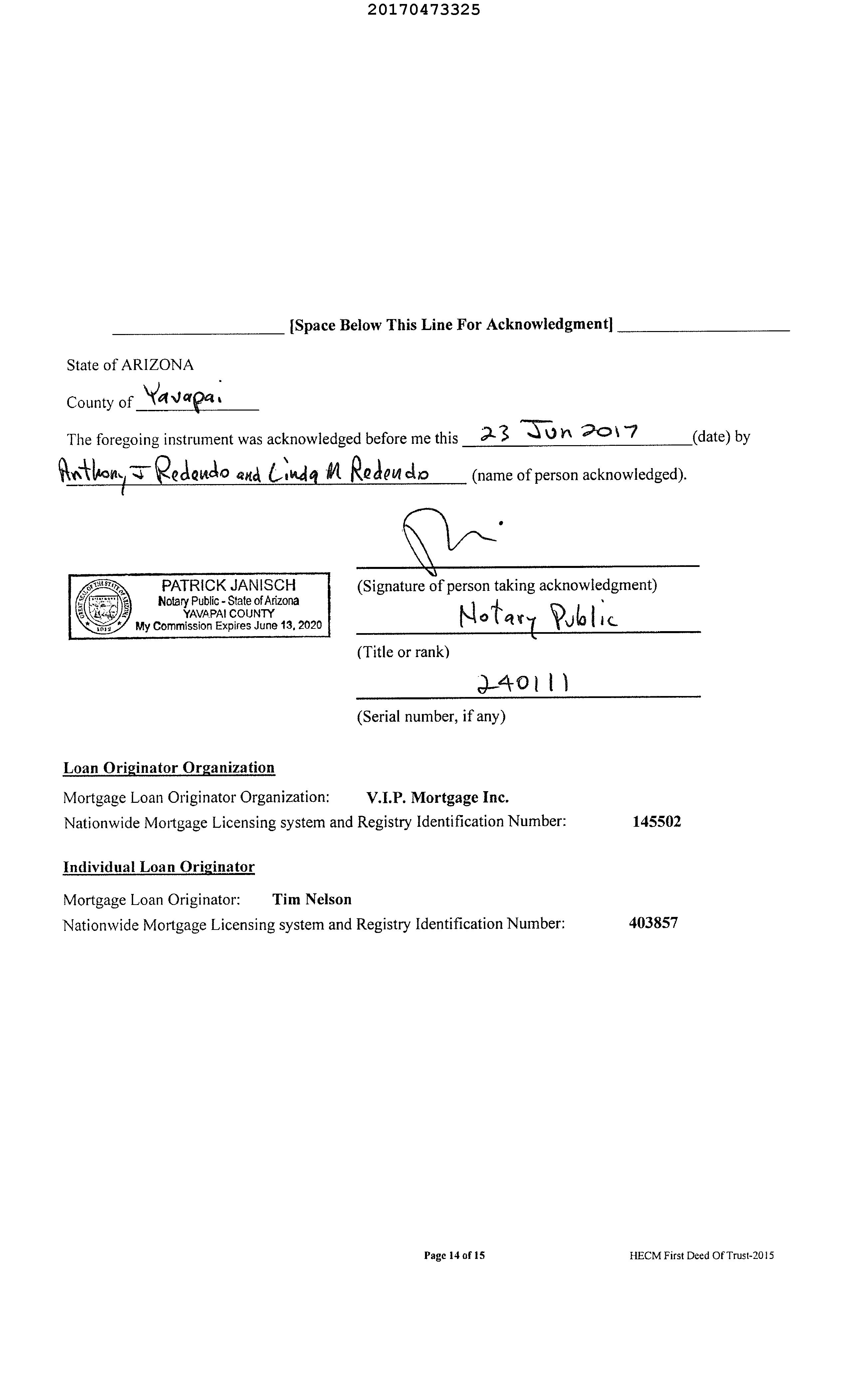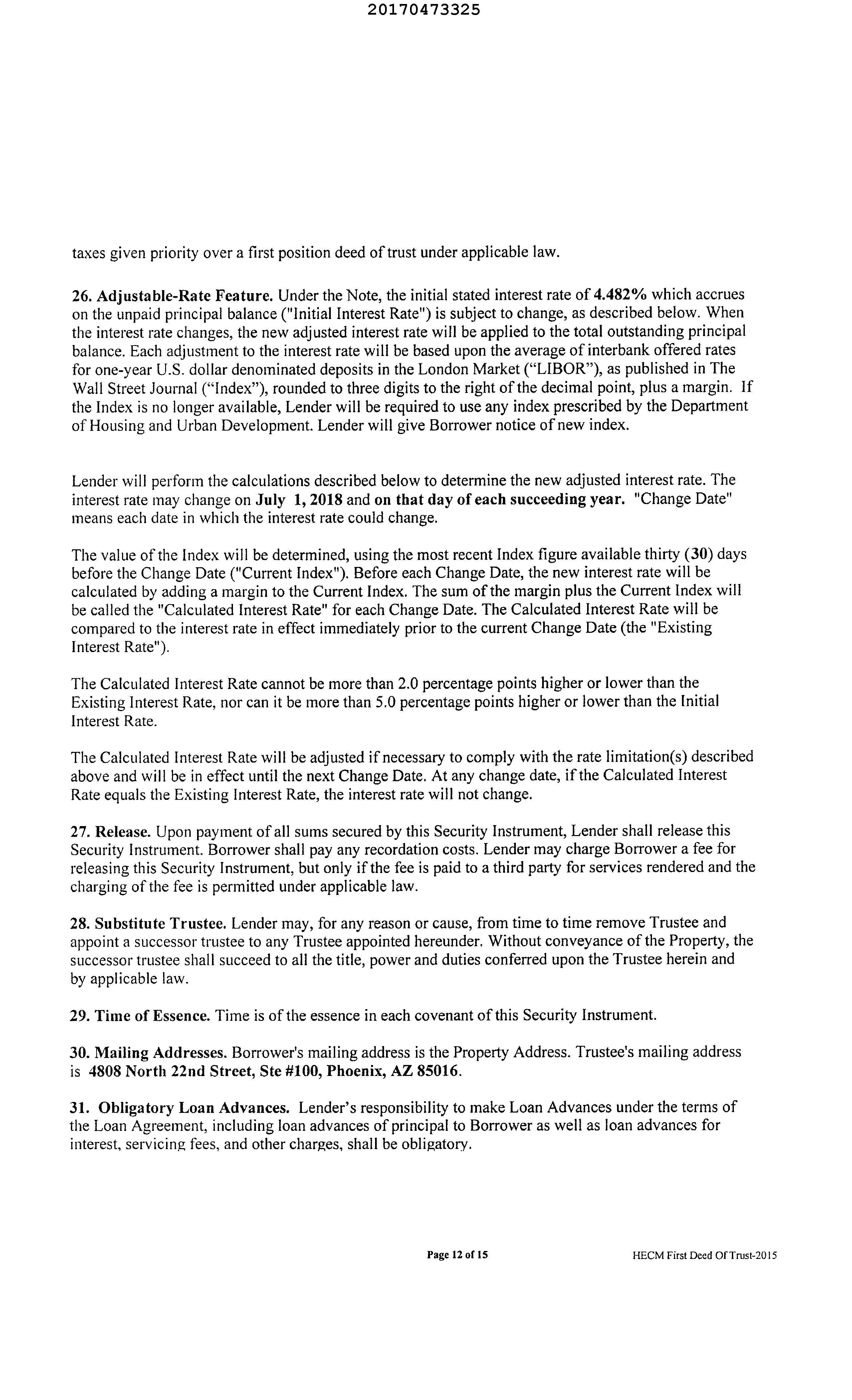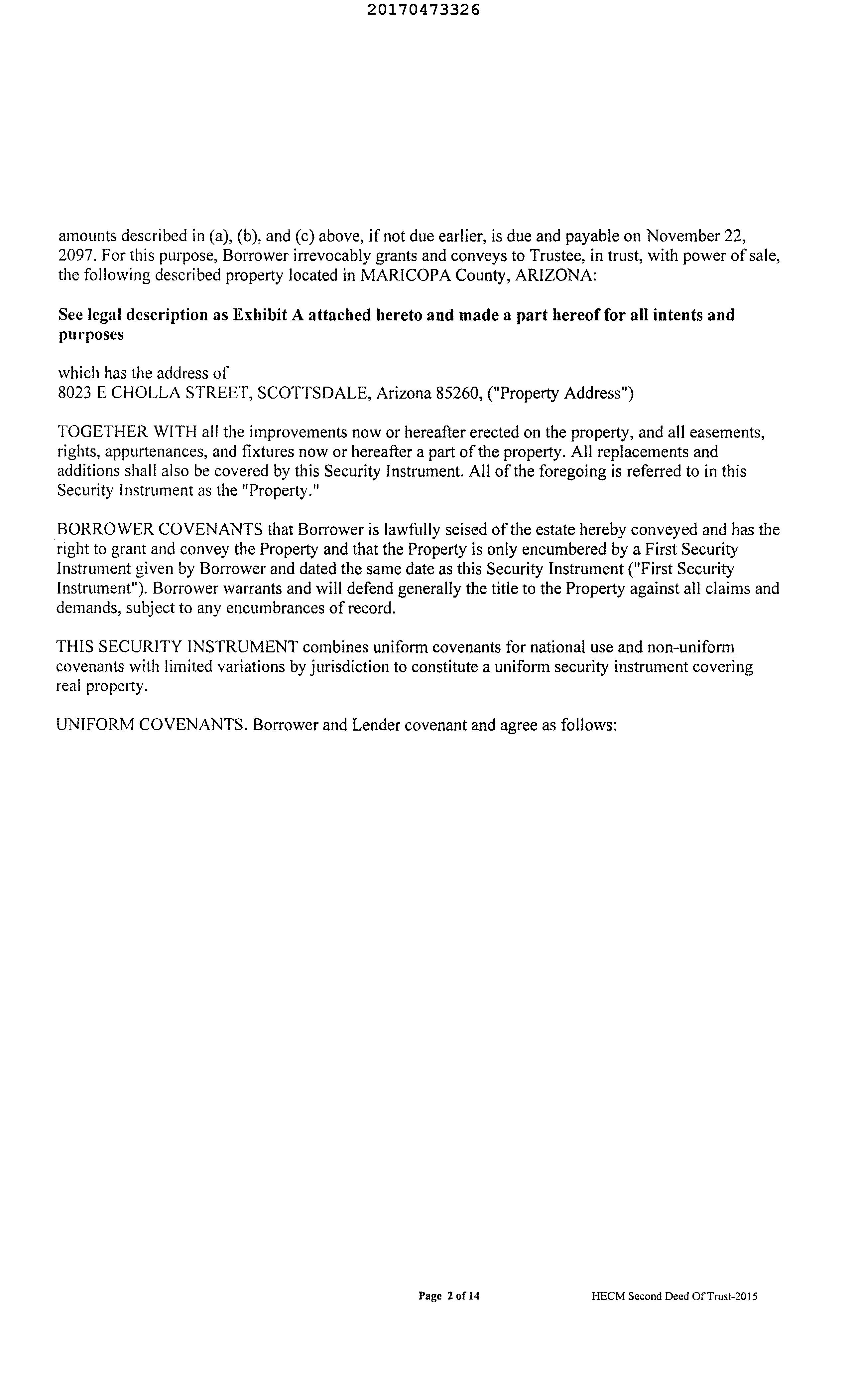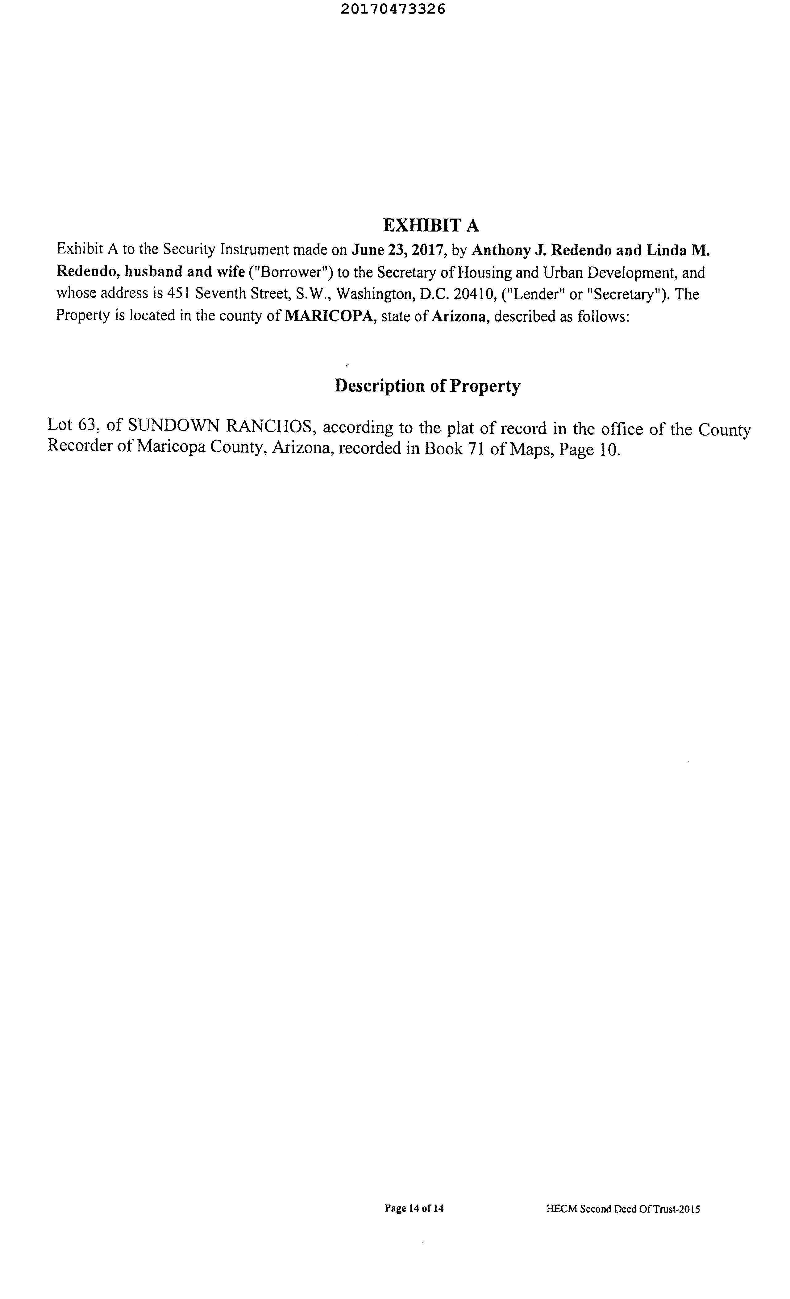 Subject Property : 8023 E Cholla St Scottsdale AZ 85260 Owner Information Owner Name : Redendo Anthony J / Redendo Linda M Mailing Address : 8023 E Cholla St, Scottsdale AZ 85260-6515 C012 Vesting Codes : Married Man / / Separate Property Owner OccupiedIndicator : O Location Information Legal Description : Lot 63 Sundown Ranchos County : Maricopa, Az Subdivision : Sundown Ranchos Census Tract / Block : 2168.16 / 3 Map Reference : 7110 Township-Range- Sect : 03N-04E-24 School District : Scottsdale 48 Legal Lot : 63 Munic/Township : Scottsdale APN : 175-30-072 Neighbor Code : 05-012 Owner Transfer Information Recording/Sale Date : 06/28/2017 / 06/22/2017 Deed Type : Warranty Deed Document # : 473324 1st Mtg Document # : 473325 Last Market Sale Information Recording/Sale Date : 06/04/2009 / 05/29/2009 1st Mtg Amount/Type : $400,000 / Pp Sale Price : $500,000 1st Mtg Document # : 505836 Document # : 505834 Price Per SqFt : $123 Deed Type : Warranty Deed Title Company : Greystone Title Agency Lender : Private Individual Seller Name : Mcs Asset Management Llc Prior Sale Information Prior Rec/Sale Date : 07/31/1998 / 07/00/1998 Prior Lender : Mortgage Rsrcs Prior Sale Price : $245,000 Prior 1st Mtg Amt/Type : $196,000 / Conv Prior Doc Number : 664411 Prior 1st Mtg Rate/Type : / Fixed Rate Loan Prior Deed Type : Warranty Deed Customer Name : Chantel Cortez Customer Company Name : FIRST AMERICAN TITLE Prepared On : 08/19/2022 © 2022 CoreLogic. All rights reserved