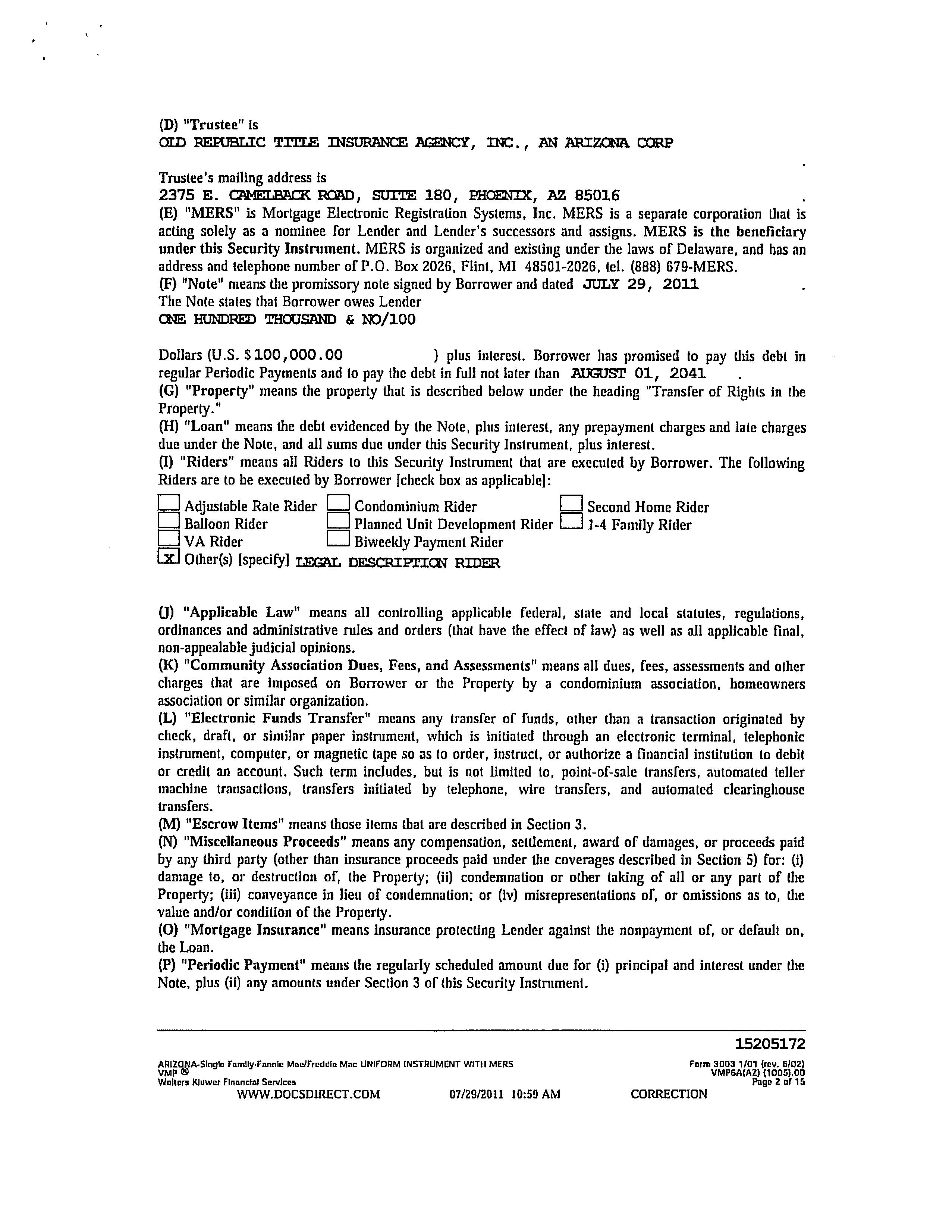 IMPORTANT -- PLEASE READ CAREFULLY: This report is not an insured product or service or a representation of the condition of title to real property. It is not an abst ract, legal opinion, opinion of title, title insurance commitment or preliminary report, or any form of Title Insurance or Guaranty. This report is issued exclusively for the benefit of the Applicant therefor and may not be used or relied upon by any other person. This report may not be reproduced in any manner without First American or Title Security's prior written consent.