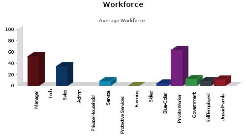 Manager/Prof: 52.14% Private Worker: 63.16% Technical: Government Worker: 11.54% Sales: 34.89% Self Employed Worker: 8.3%