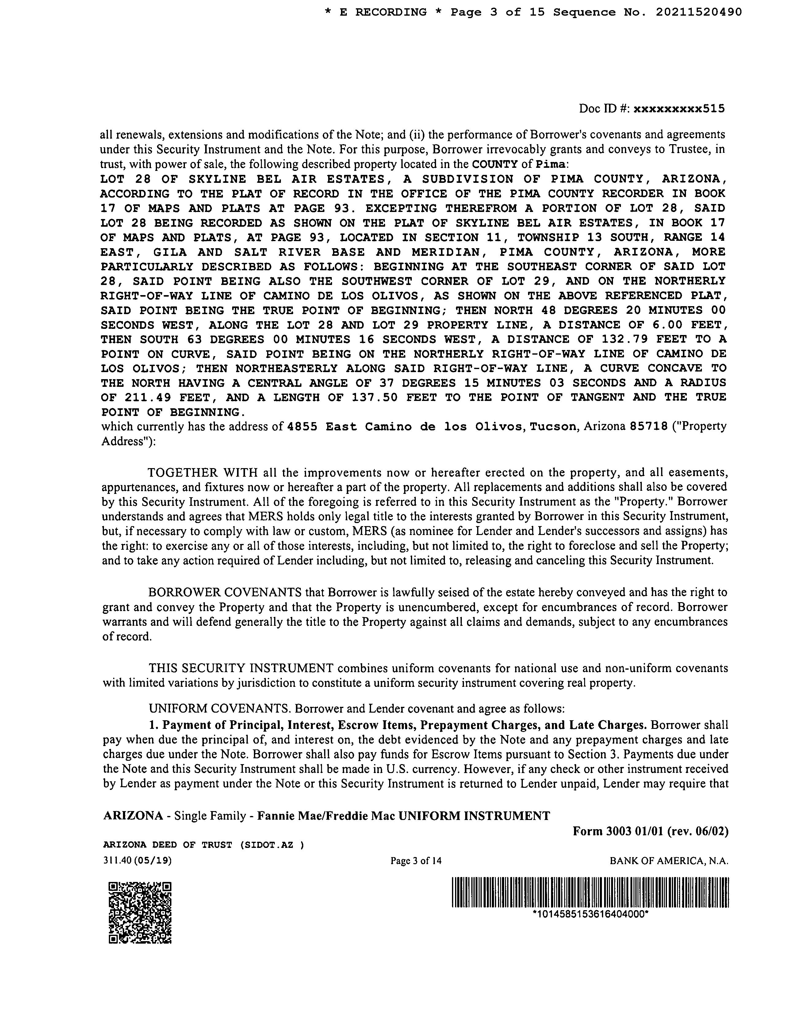OWNER: BORNFIELD A J G AFFIDAVIT 2014 2730168 09/30/2014 SITUS: 4855 E CAMINO DE LOS OLIVOS PC MAIL: 4855 E CAMINO DE LOS OLIVOS TUCSON AZ 85718 PLAT: LOT 00028 BLOCK 0 LEGAL: SKYLINE BEL AIR ESTATES LOT 28 EXC RD CURRENT TAXES INFORMATION THROUGH 10/21/2022 LAND IMPR EXEMPT RATE AREA SPECIAL DISTRICTS