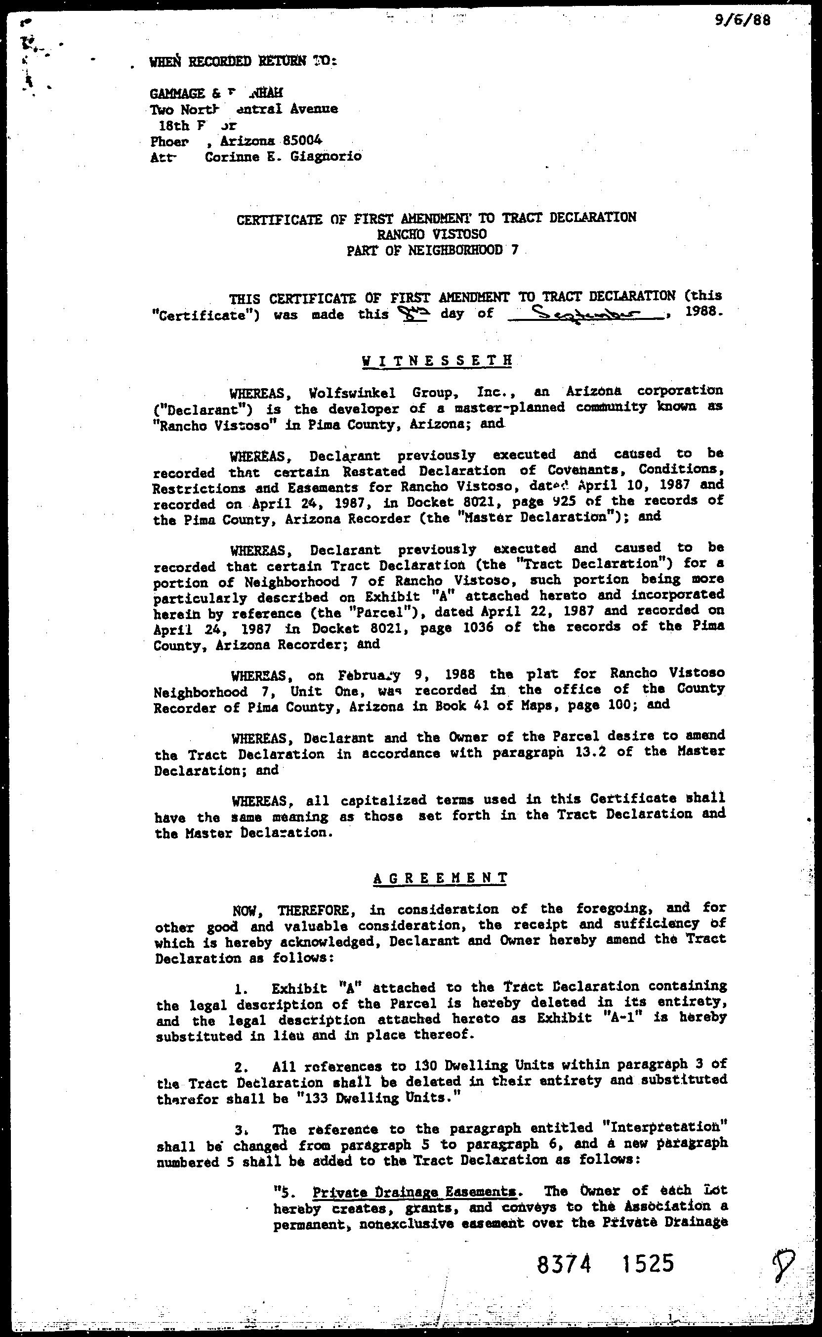 Owner Name : Huff Tr Subdivision : Rancho Vistoso Nbrhd 07