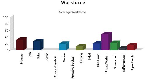 Manager/Prof: 32.2% Private Worker: 48.48% Technical: Government Worker: 22.54% Sales: 27.27% Self Employed Worker: 6.44%