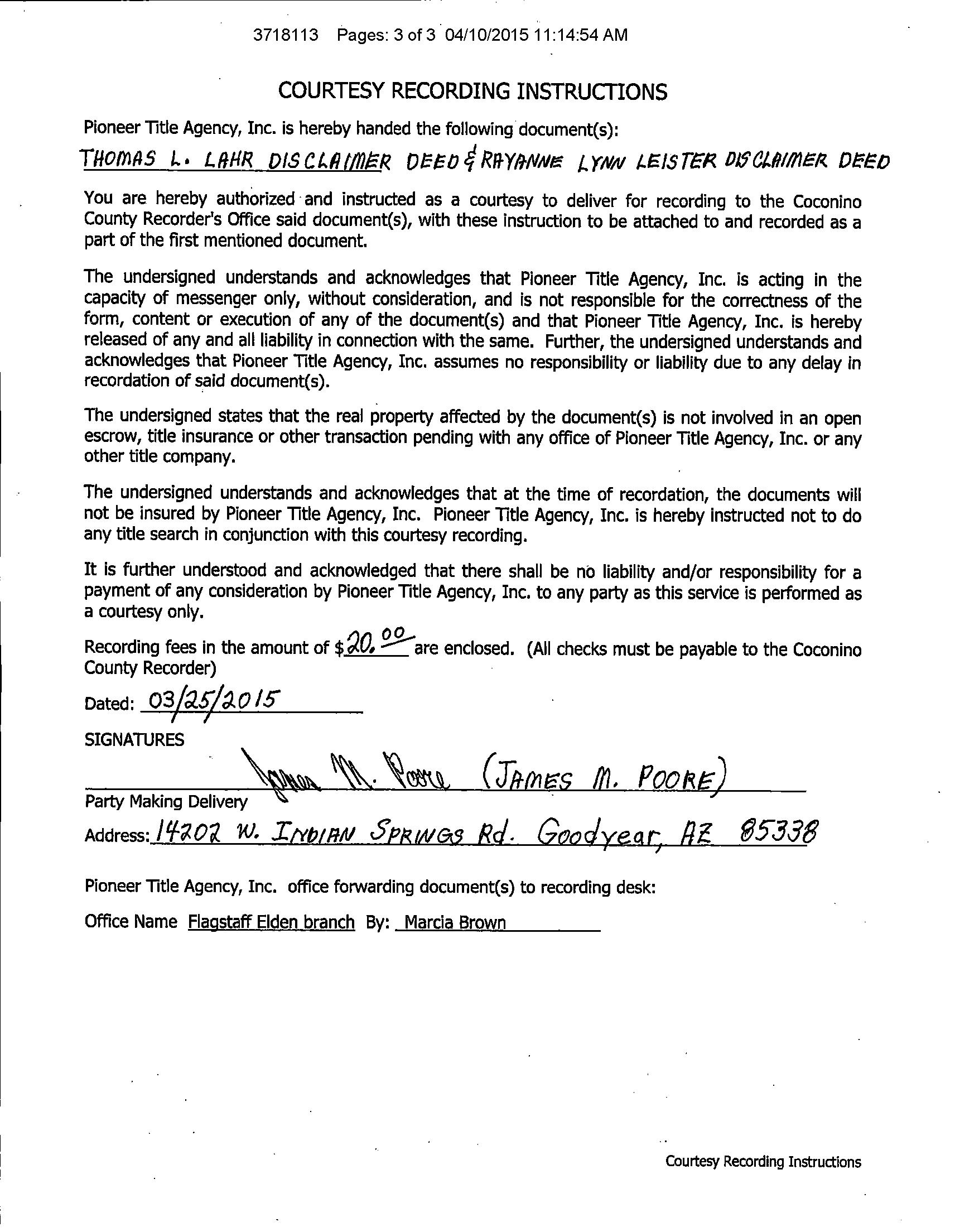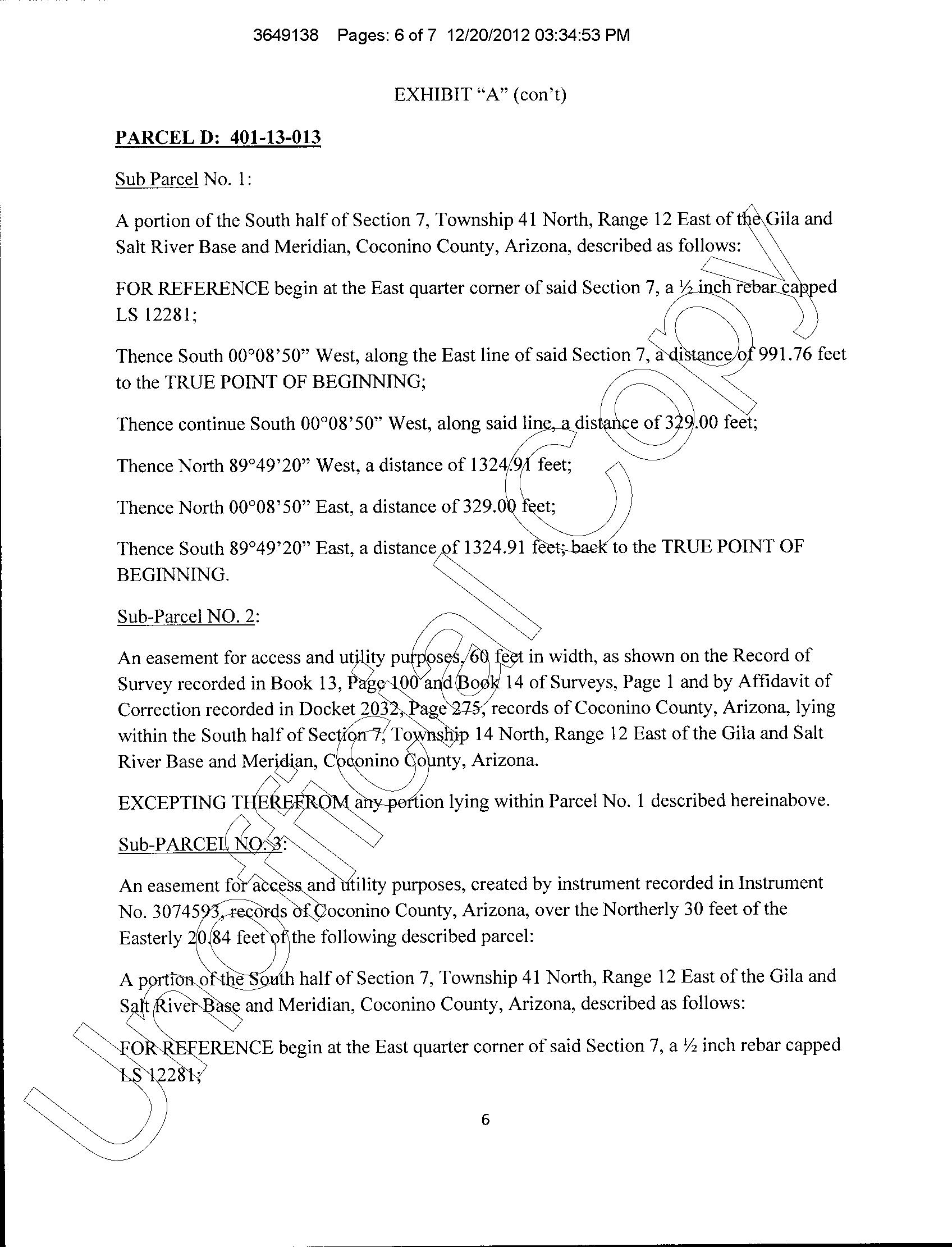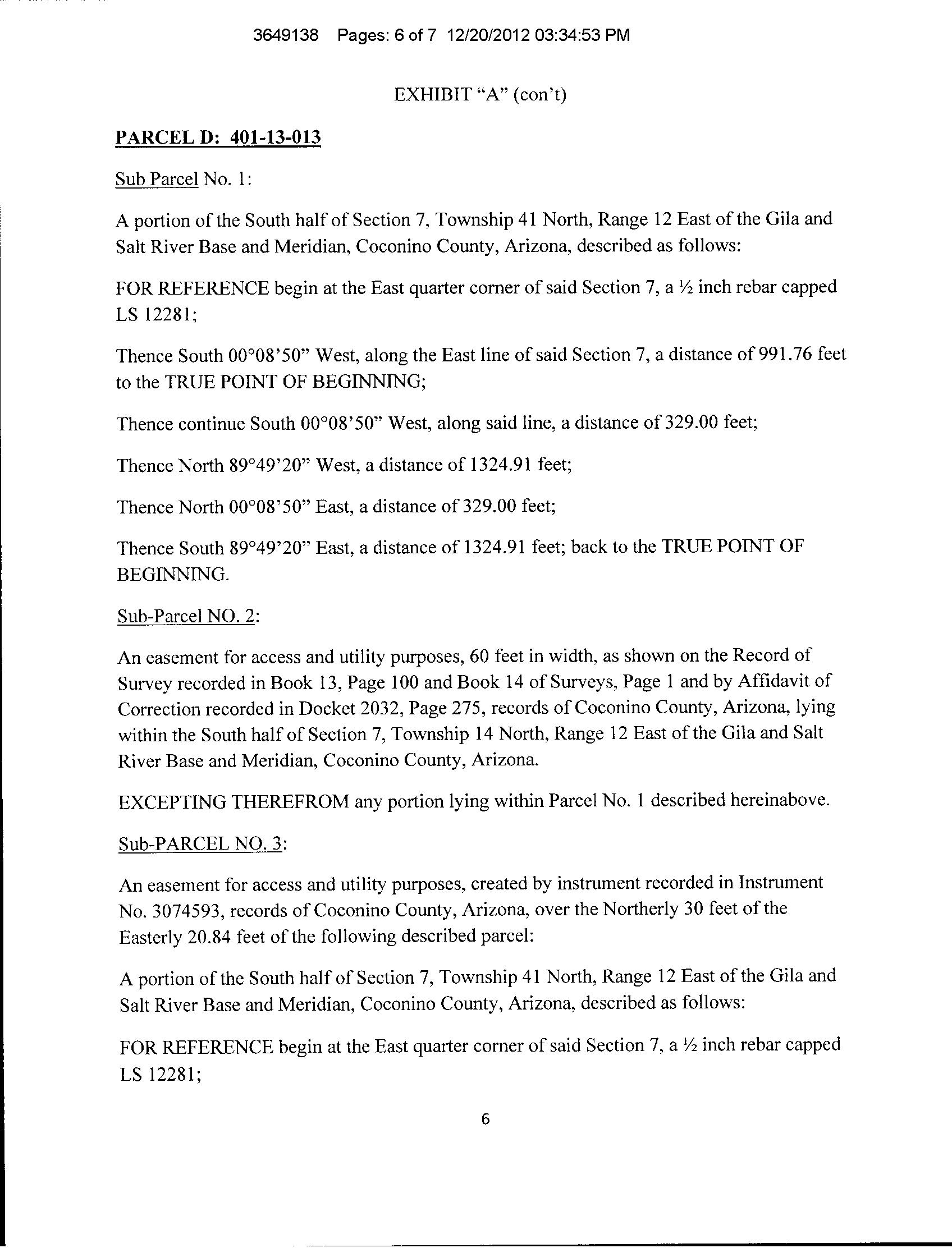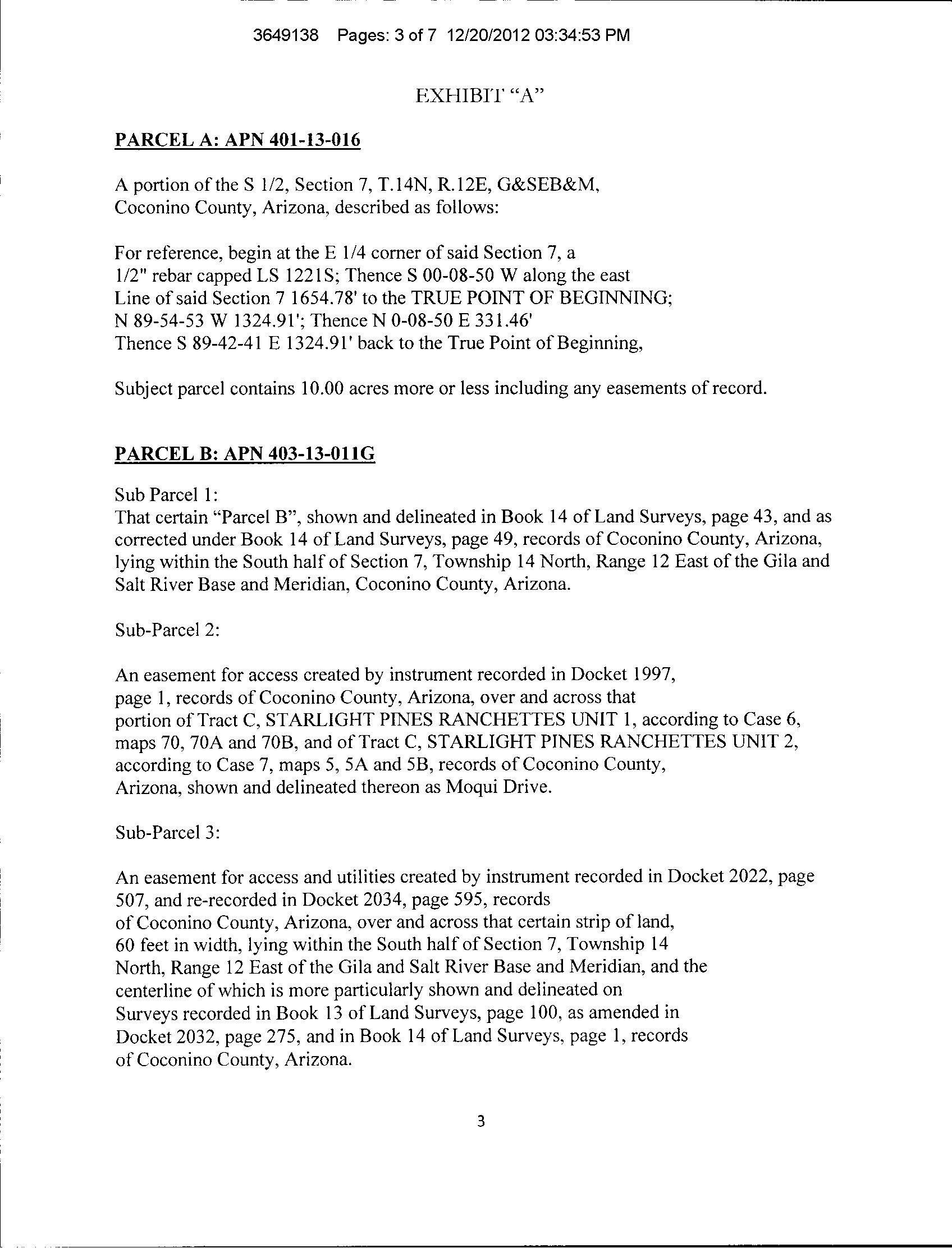 Subject Property : Happy Jack AZ 86024 Owner Information Owner Name : Leister Dwight B Jr Mailing Address : 19027 W Lower Buckeye Rd, Buckeye AZ 85326-9550 R010 Location Information Legal Description : Subdivision: Moqui Ranchettes Lot: 12 Sixteenth: Nw Quarter: Sw Section: 07 Township: 14n Range: 12e County : Coconino, Az APN : 403-13-048 Census Tract / Block : 15.00 Alternate APN : R0351041 Township-Range- Sect : 14N-12E-07 Subdivision : Moqui Ranchettes Legal Lot : 12 Neighbor Code : 5.03 Owner Transfer Information Recording/Sale Date : Year / Property Information Land Use : AcreageResidential Lot Size : 439,956 State Use : NonVac-res-ruralSubd Lot Acres : 10.10 Tax Information Total Value : $58,448 Tax Year : 2021 Market Value : $58,448 Total TaxableValue : $8,767 Property Tax : $650.52 Current AssessedYear : 2023 Assessed Year : 2021 Tax Rate Area : 0504 Current YearValue :Total $17,184 Customer Name : Kariann Keomaka Customer Company Name : First American Title Insurance Company Prepared On : 08/25/2022 © 2022 CoreLogic. All rights reserved