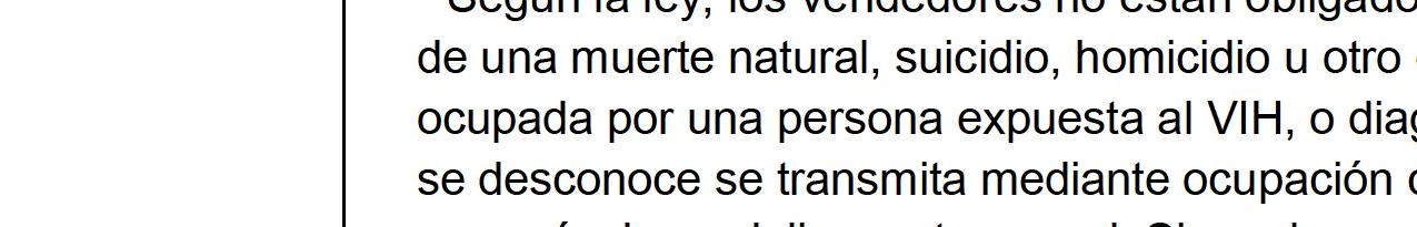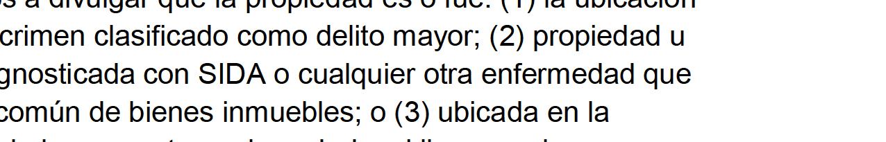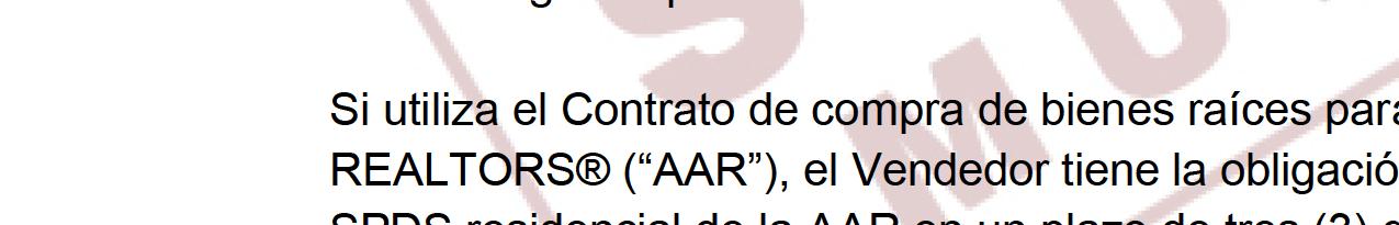 condiciones del mercado El mercado de bienes raíces es cíclico y los precios suben y bajan. También cambia el mercado financiero, lo cualafecta lostérminos bajo los cuales un prestamista aceptará hacer un préstamo para propiedades de bienes raíces. Es imposible predecir conexactitudlascondicionesdel mercado de bienes raíces o financieroen un momentodado. La decisión final sobre el precio, tanto el que está dispuesto a pagar el comprador como el que está dispuestoaaceptarelvendedor por una propiedad específica, recae sobre el comprador o el vendedor individual. Las partes en una transacción deben decidir el precio y los términos en vista de las condicionesdel mercado,sus propiosrecursosy sus condicionesúnicas.Laspartesdeben,despuésdecuidadosa deliberación, decidir cuánto riesgo están dispuestas a asumir en una transacción. Cualquier renuncia a contingencias, derechos o garantías en el Contrato puede tener consecuencias adversas. El comprador y el vendedor Elreconocenqueentiendenestosriesgos.compradoryelvendedorasumentodaresponsabilidadencasodequeelrendimiento de la inversión, consecuencias fiscales, efectos sobre el créditoo lostérminosfinancierosno cumplancon sus expectativas. Las partes comprenden y aceptan que el o los Agentes no ofrecen asesoría sobre la propiedad como una inversión. El o los Agentes no están calificados para ofrecer asesoría financiera, legal o fiscal relacionada con una transacción de bienes raíces. Por lo tanto, el o los Agentes no hacen representación alguna en cuanto a los temas arriba mencionados. Se aconseja al comprador y al vendedor que obtengan asesoría fiscal y legal en cuanto a qué tan aconsejable es celebrar esta transacción.MarketConditions Advisory (AAR, ejemplos deformularios) Leyes de vivienda justa ydiscapacidad La Ley de Vivienda Justa (Fair Housing Act) prohíbela discriminación en la venta,rentay financiamiento de viviendas, por motivos de raza, color, nacionalidad, religión, sexo, estatus familiar (incluyendo hijos menores de 18 años que viven con personas tramitando la custodia de menores de 18 años) y