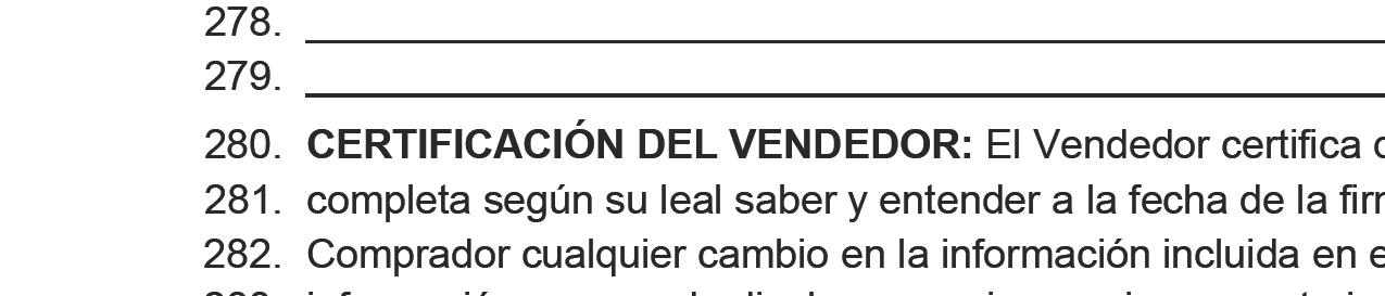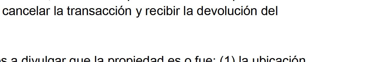 El mercado de bienes raíces es cíclico y los precios suben y bajan. También cambia el mercado financiero, lo cual afecta los términos bajo los cuales un prestamista aceptará hacer un préstamo para propiedades de bienes raíces. Es imposible predecir con exactitud las condiciones del mercado de bienes raíces o financiero en un momento dado. La decisión final sobre el precio, tanto el que está dispuesto a pagar el Comprador como el que está dispuesto a aceptar el Vendedor por una propiedad específica, recae exclusivamente sobre el Comprador y el Vendedor individual. Las partes en una transacción de bienes raíces deben decidir el precio y los términos bajo los cuales están dispuestos a comprar o vender en vista de las condiciones del mercado, sus propios recursos financieros y sus condiciones únicas. Las partes deben, después de cuidadosa deliberación, decidir cuánto riesgo están dispuestas a asumir en una transacción. Cualquier renuncia a imprevistos, derechos o garantías en el Contrato podría tener consecuencias adversas. El Comprador y el Vendedor reconocen que entienden estos riesgos. El Comprador y el Vendedor asumen toda responsabilidad en caso de que el rendimiento de la inversión, consecuencias fiscales, efectos sobre el crédito o los términos financieros no cumplan con sus expectativas. Las partes comprenden y aceptan que el o los Agentes no ofrecen asesoría sobre la propiedad como una inversión. El o los Agentes no están calificados para ofrecer asesoría financiera, legal o fiscal relacionada con una transacción de bienes raíces. Por lo tanto, el o los Agentes no realizan ninguna declaración en cuanto a los temas arriba mencionados. Se aconseja al Comprador y al Vendedor obtener asesoría fiscal y legal profesional en cuanto a qué tan conveniente es celebrar esta transacción.