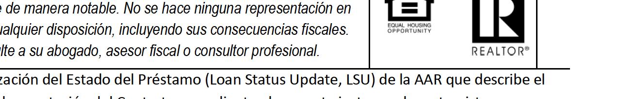 la forma de Actualización de estado del préstamo (Loan Status Update, LSU) de la AAR o en la Forma de precalificación de la AAR, lo que se entregue al
