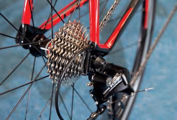Keep the chain running smoothly with a high-quality chain lubricant rather than generalpurpose oil. A dirty chain will wear out quickly and reduce the life of other components. Some degreaser and a stiff wire brush should shift the grime, or you could buy a chain cleaner.