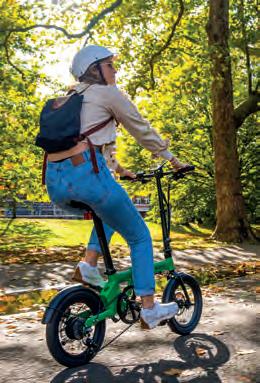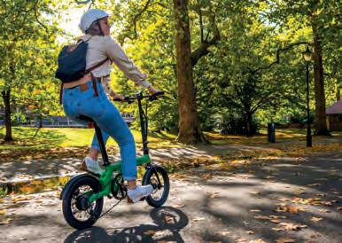 An e-bike is a bicycle with an electric motor. You get most of the benefits of riding a bike but with less huffing and puffing on the hills.