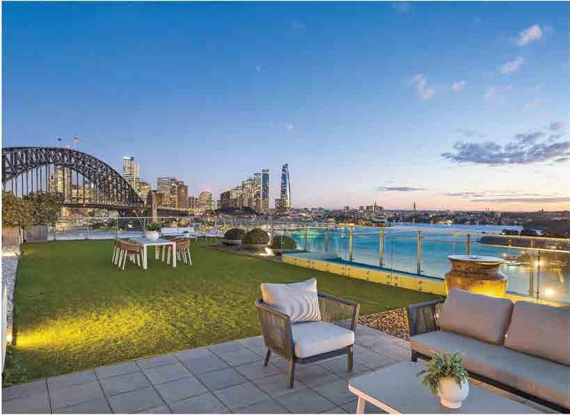 拥有令人印象深刻的600平方米生活空间, 尽赏悉尼港和标志性大桥到熏衣草湾的 壮丽240度全景,这座精美的住宅 独一无二。顶级地理位置完善了这一 高端配套设施,距离水边仅几步之遥, 还有多种交通和购物选择。
