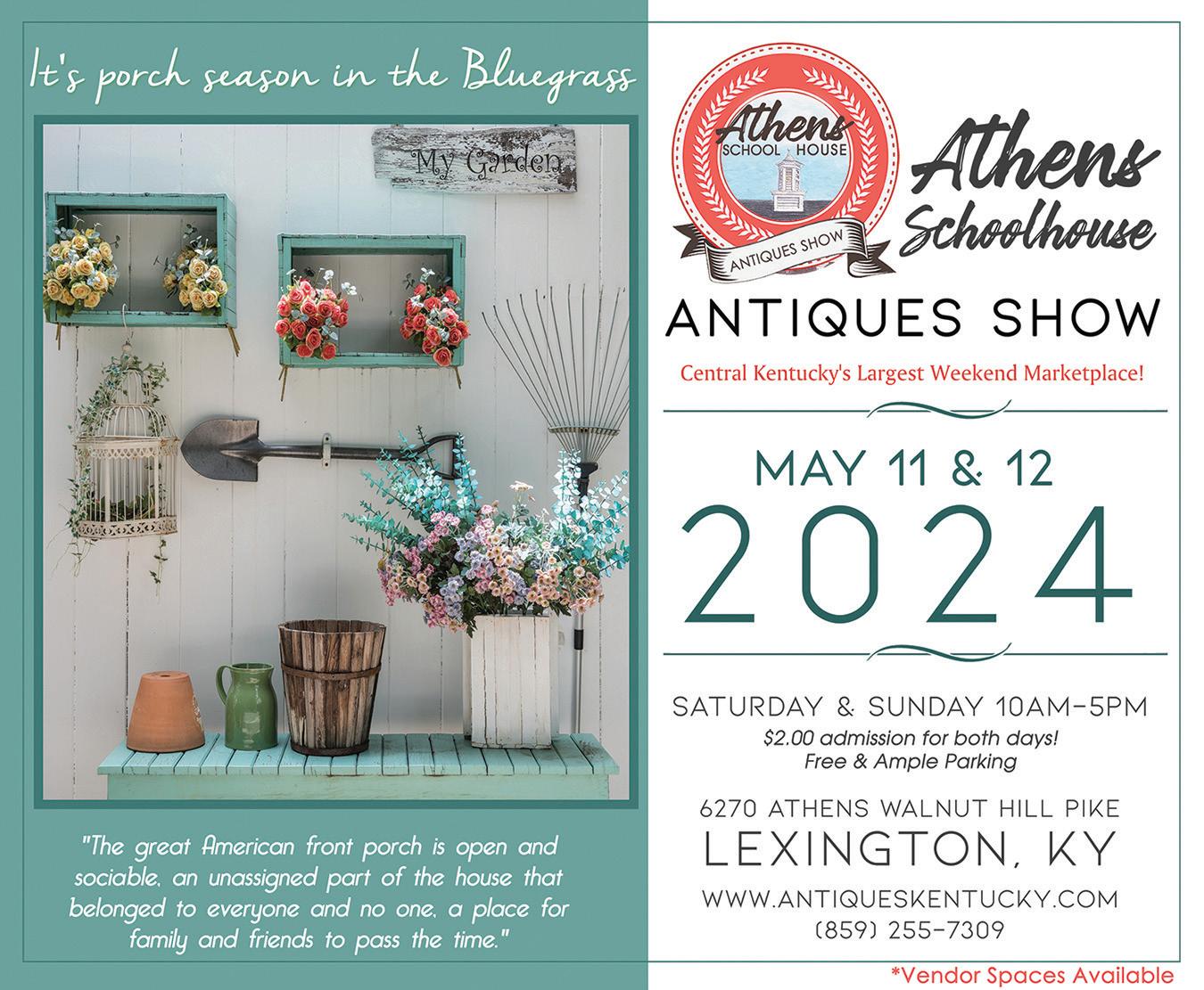 2 | May 2024 | acemagazinelex.com 866.937.1776 | GourmetGiftOffer.com/MBID317MD CELEBRATING The person who makes every day brighter. Reg $129.99 NOW ONLY $90.99 WITH CODE: MBID317MD JUICE BAR BREAKFAST BASKET #5871 THINKING OF YOU, LOOSE LEAF TEA #5640B Cut your own flowers COME VISIT US AND We make our own soaps, candles, and lotion and sell them in our on-farm store. 1061 South Cleveland Road, Lexington, KY | 859.309.2516 www.mommomslavender.com SAVE THE DATES JUNE 22 – Lavender Festival MID-AUGUST – Sunflower Festival THE ONLY LAVENDER FARM & STORE IN FAYETTE COUNTY!