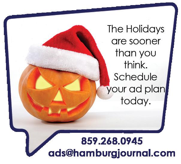 ads@hamburgjournal.com 210 E High Street #473 Lexington, KY 40588 COPYRIGHT © 2023 LEARN MORE AT DON’T BELIEVE THE LIES... YOU ARE AN MVP! Coming Soon... OCT NOV DEC THINK PINK Women’s Issue November Holiday Guide Fall Holiday Guide December Holiday Guide Call today to advertise! 859.268.0945 | ads@hamburgjournal.com JAN New Year, Healthy New You!