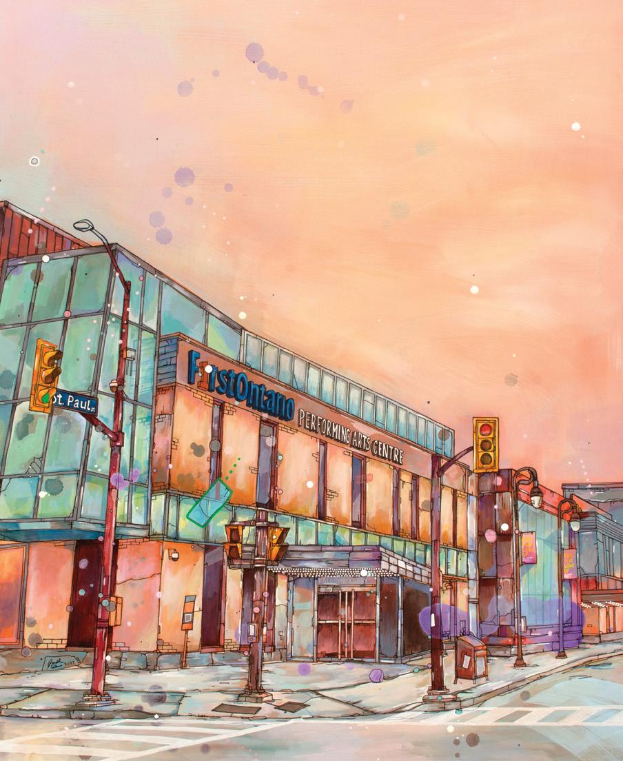 The FirstOntario Performing Arts Centre is located in downtown St. Catharines, Ontario at the corner of St. Paul and Carlisle Streets on the shared traditional lands of the Haudenosaunee, Anishinaabe, Mississaugas of the Credit First Nation, the Neutral Peoples and many other Indigenous People from across Turtle Island. This territory is covered by the Upper Canada Treaties and is within the land protected by the Dish With One Spoon Wampum agreement. We offer our sincere gratitude and respect to the original and continued stewards of this land and are reminded that our great standard of living is directly related to the resources and friendship of Indigenous Peoples.